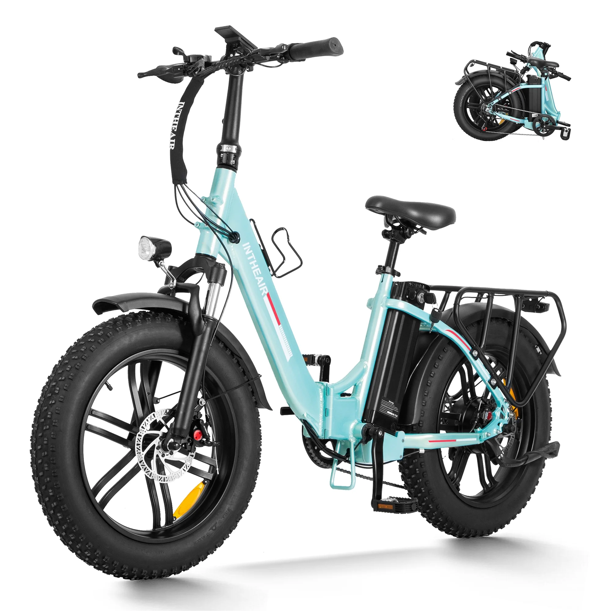 INTHEAIR Ranger Electric Bike, Foldable Ebike for Adults 20" x 4.0 Fat Tire Step Thru Electric Bicycle with 750W Motor, 48V 13AH-Green