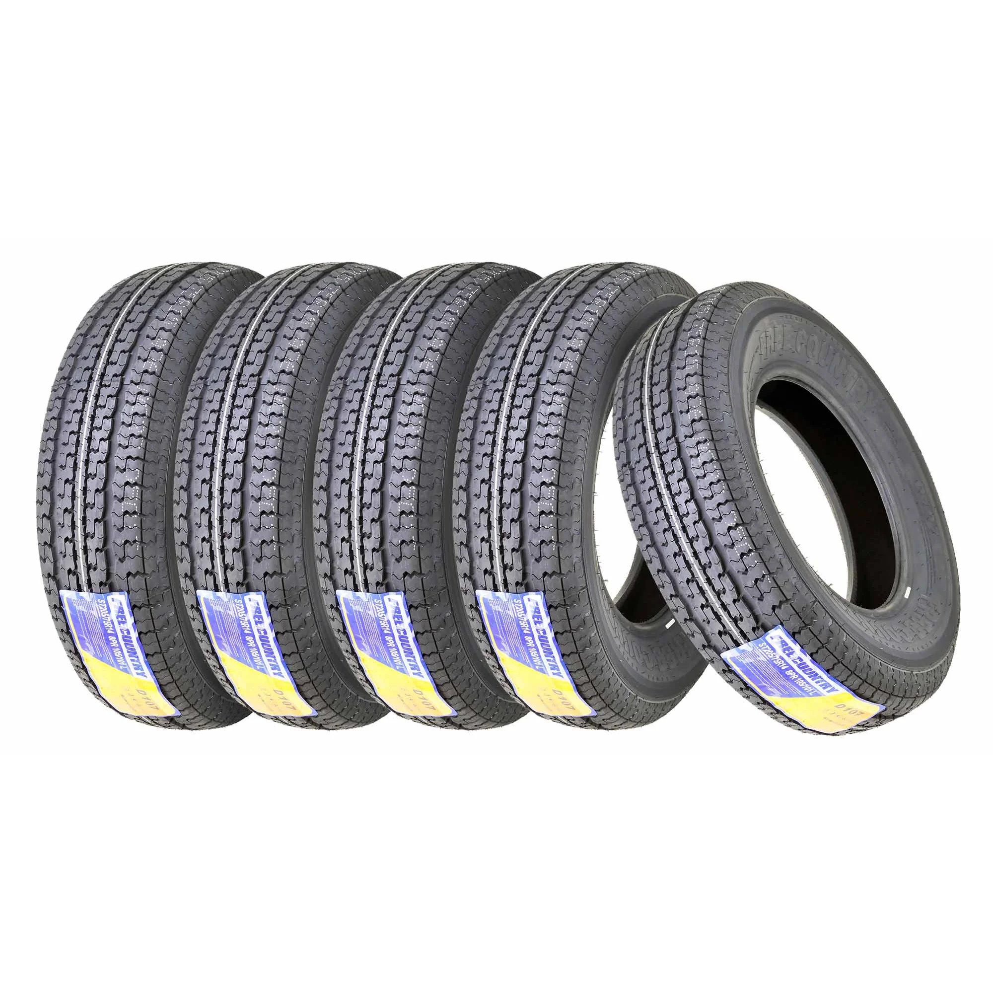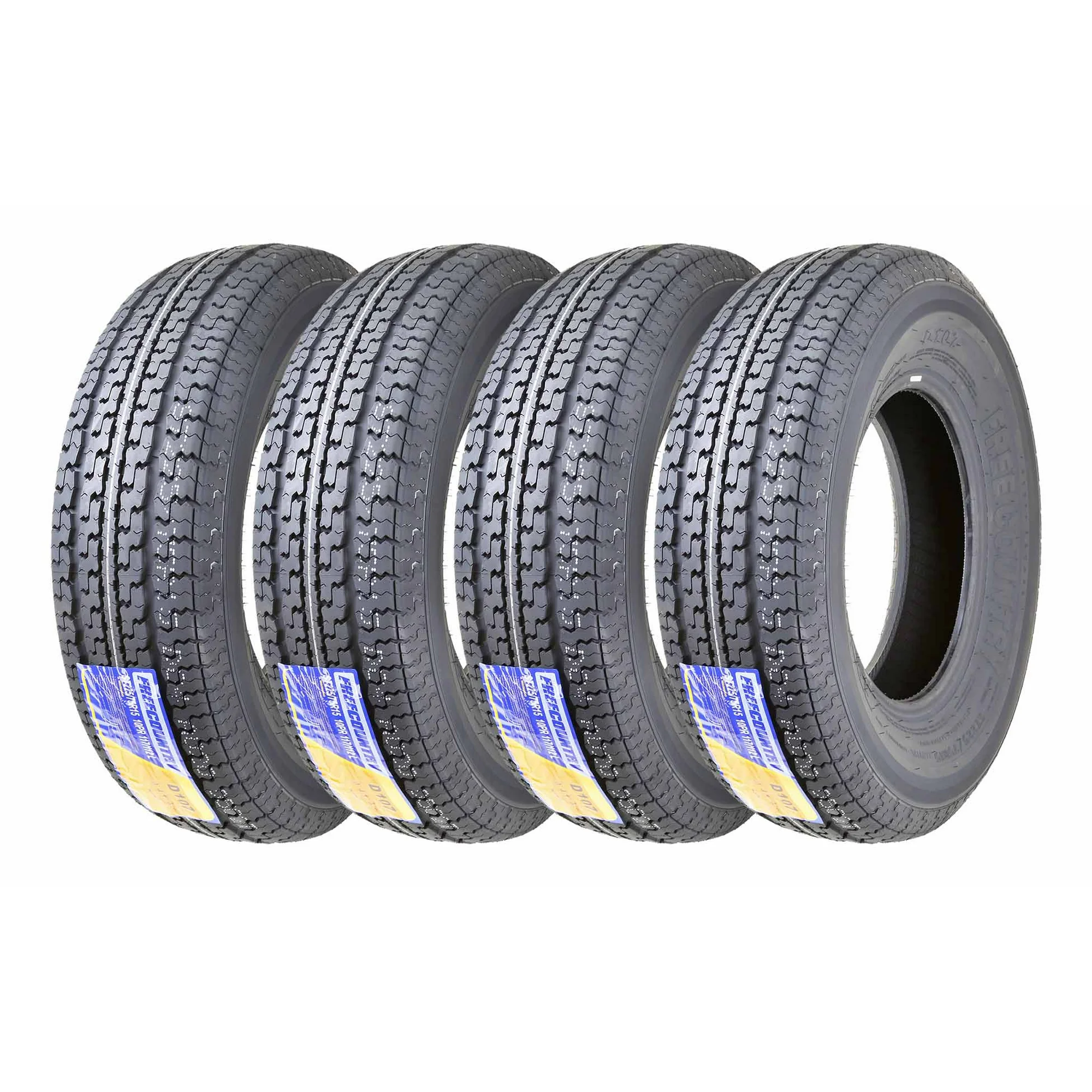 FREE COUNTRY New Premium Trailer Tires ST 205 75R15 / 8PR Load Range D Radial w/Scuff Guard, Set 5