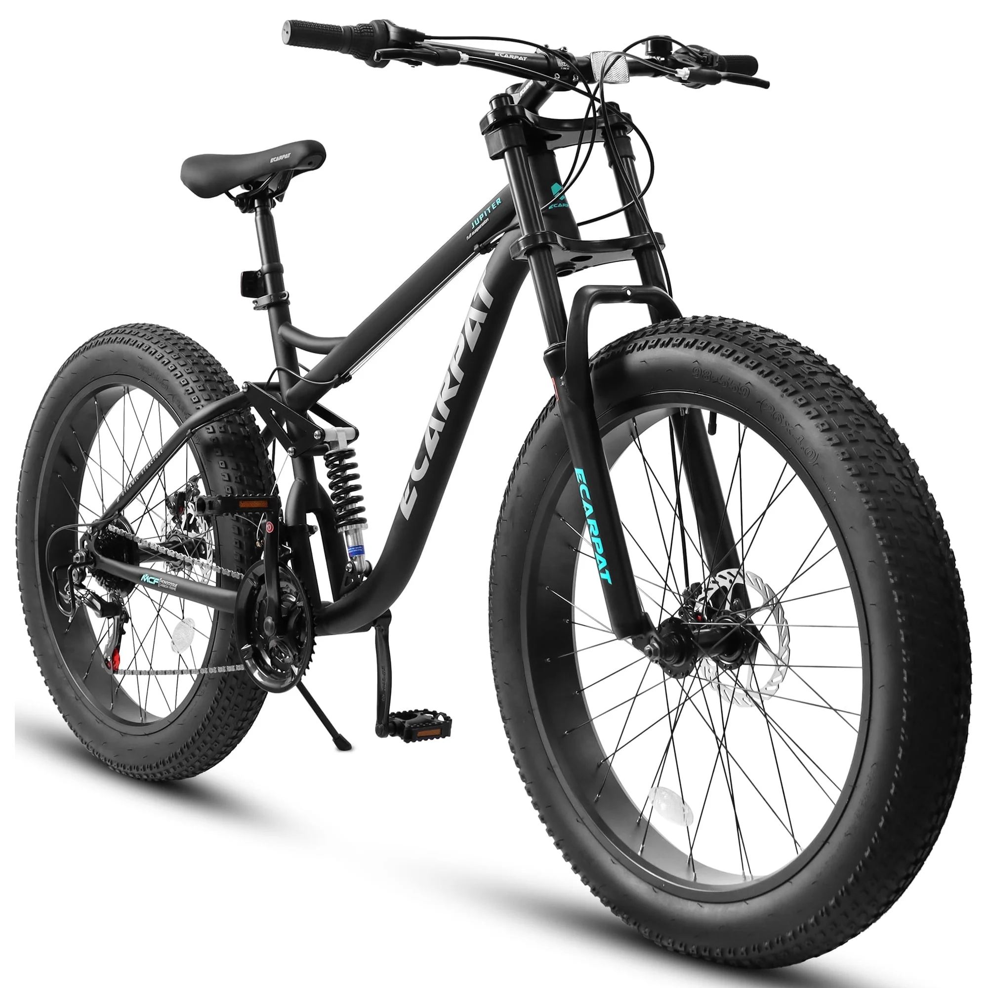 26 inch Fat Tire Bike, Full Suspensions Mountain Bike with Disc Brakes 21 Speed, Black