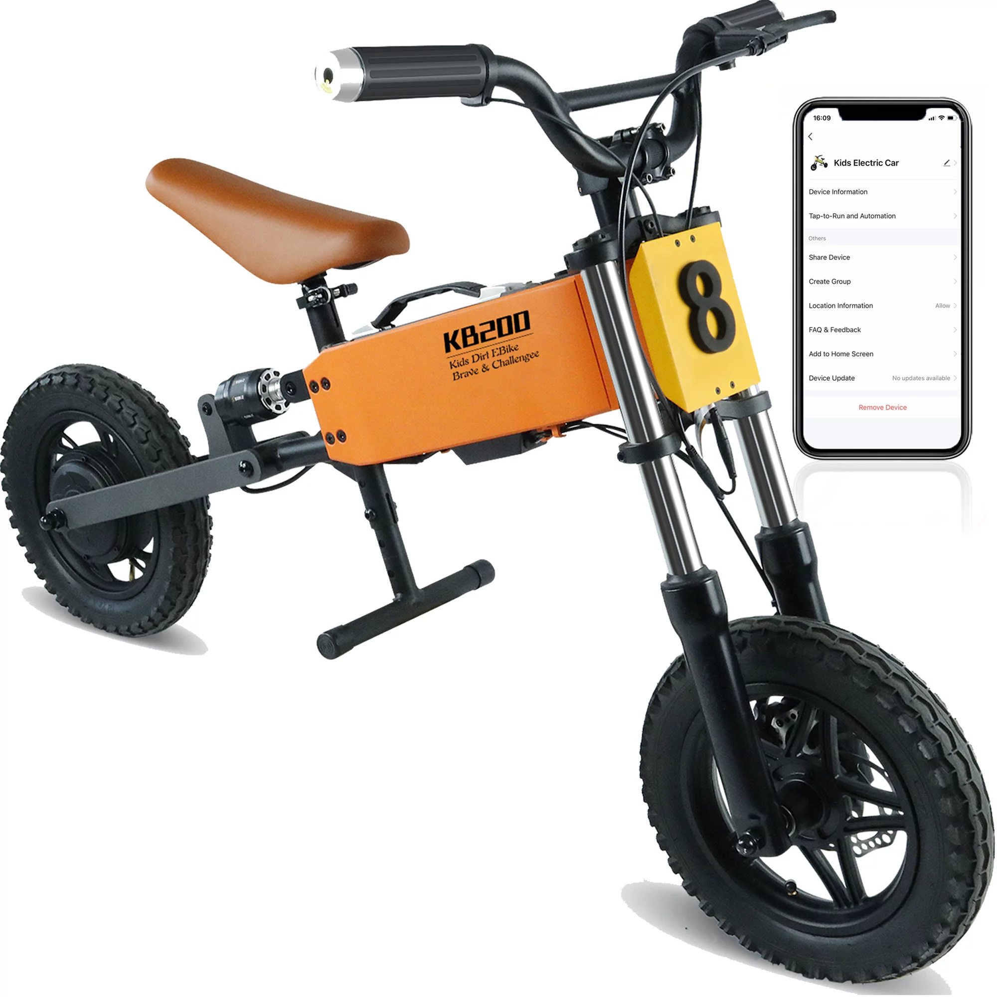 iRerts Electric Bike for Kids Ages 5-10, 24V 200W Kids Electric Balance Bicycle with APP Control, Adjustable Seat, 12" Inflatable Tire, 6-15.5MPH, Electric Dirt Bike Electric Motorcycle for Boys Girls