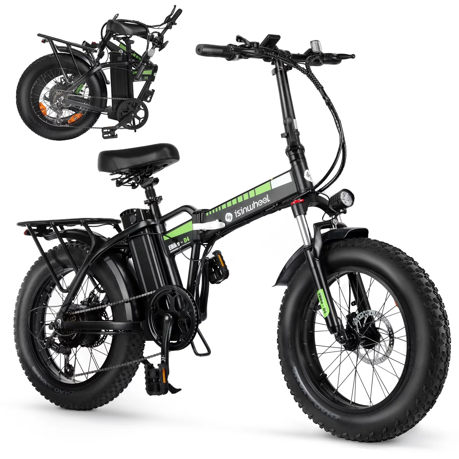 isinwheel D4 Electric Bike for Adult, 20" Fat Tire Electric Bicycle with 500W Motor, 15AH Removable Battery, Foldable E-Bike with Front Suspension, Shimano 7 Speed