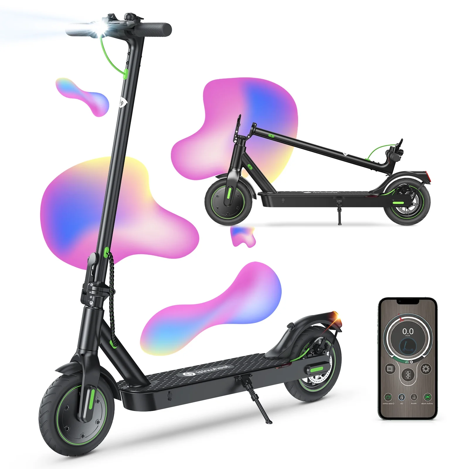 isinwheel S9MAX Electric Scooter, 500W Adult Scooter, 25 Miles Range ,Top Speed 21MPH, 10-inch Honeycomb Tires Smart Escooter with Bluetooth and App