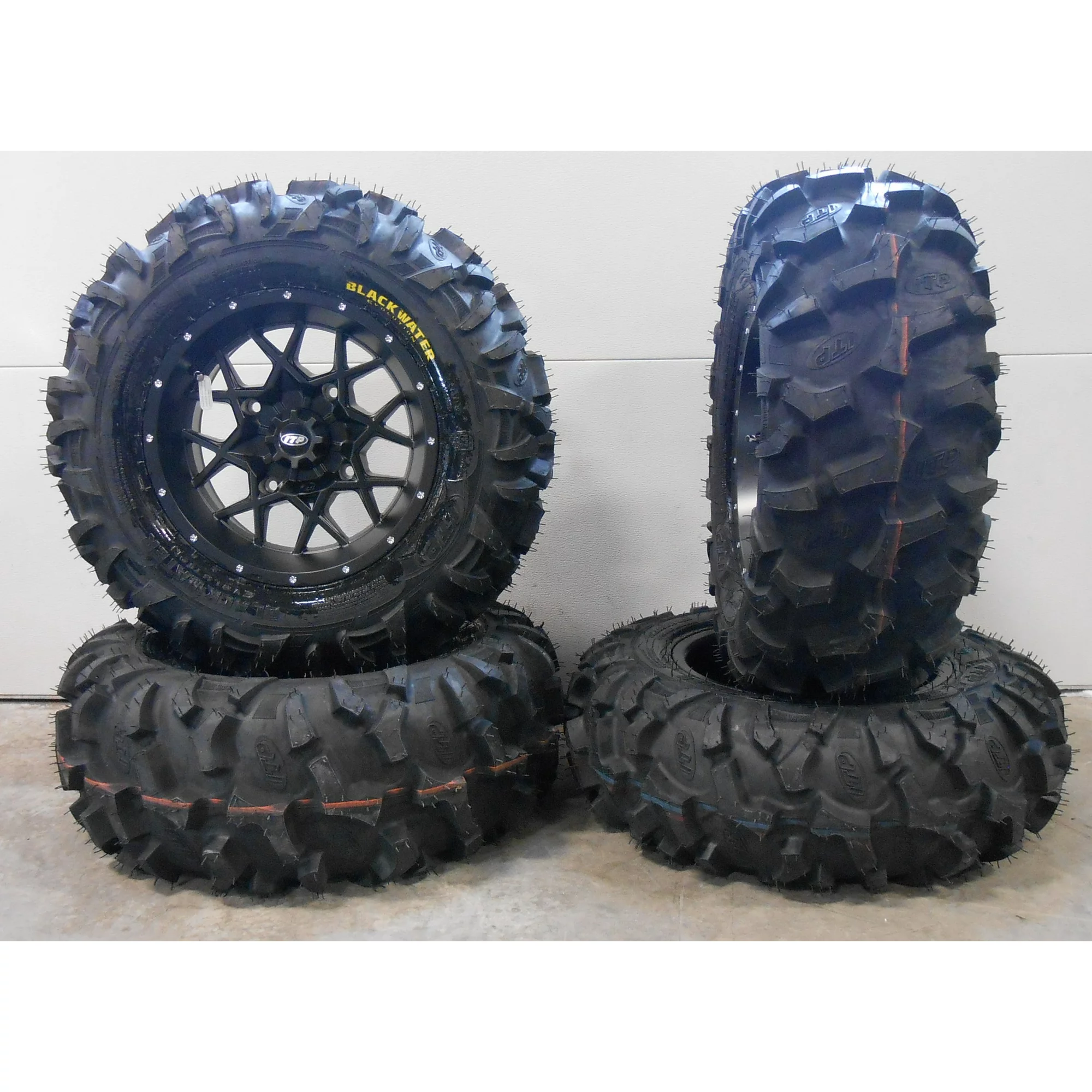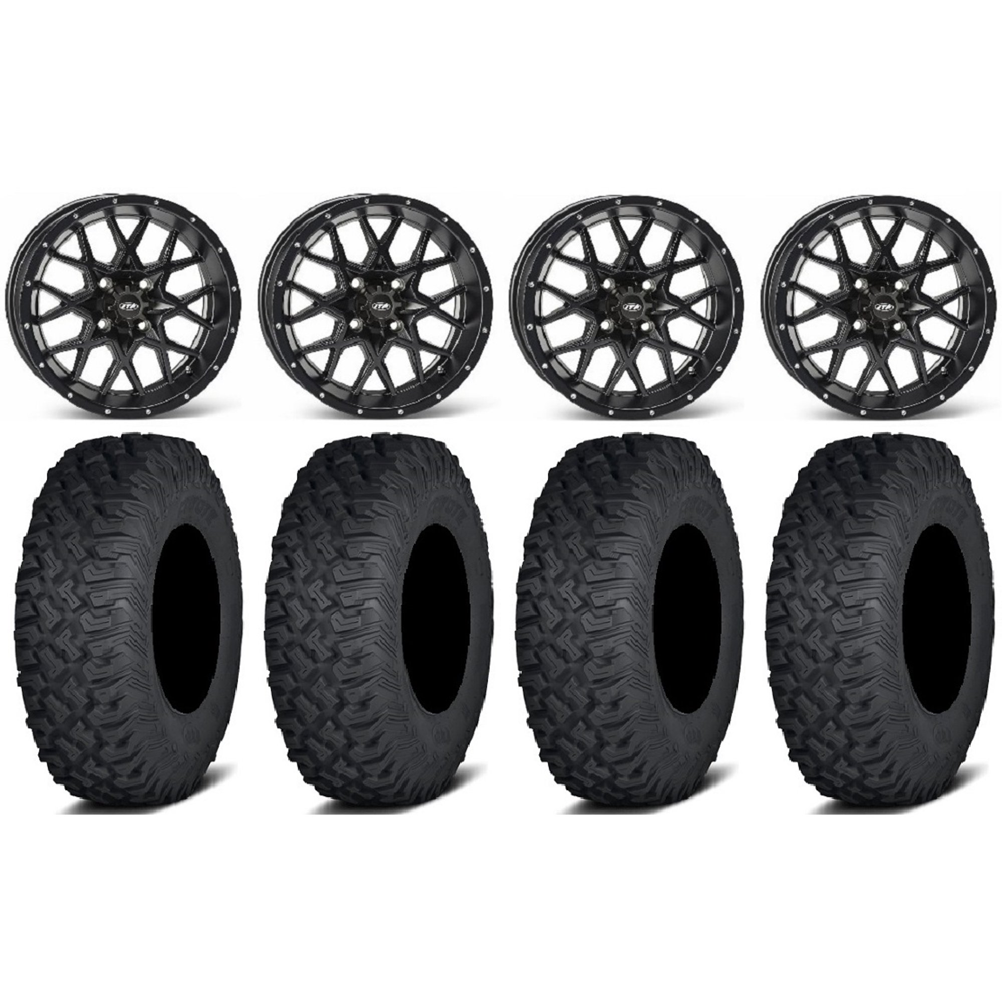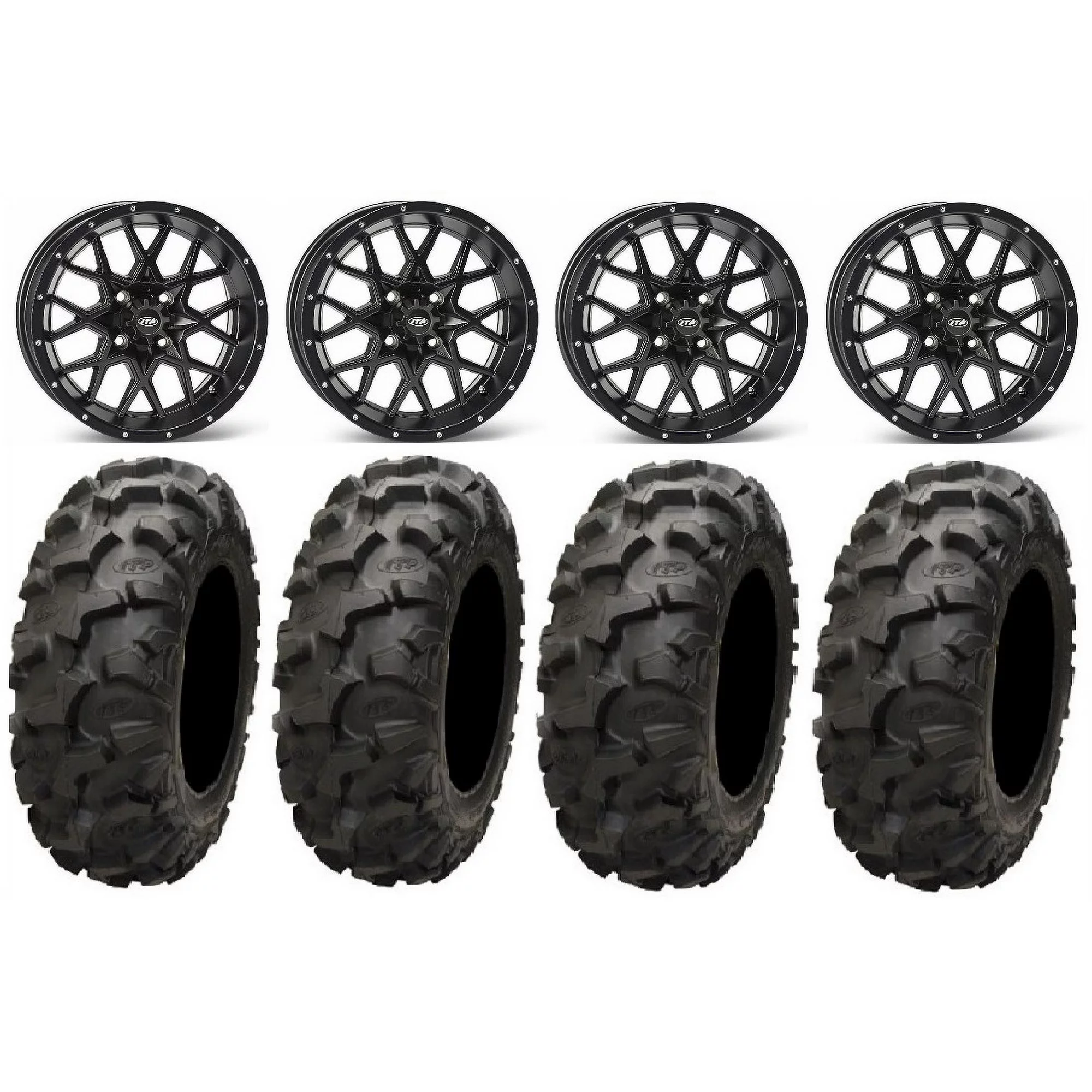 ITP Hurricane 14" Wheels Black 30" Blackwater Tires Yamaha Viking Wolverine YXZ1000R CFMoto ZForce 950 UForce 1000