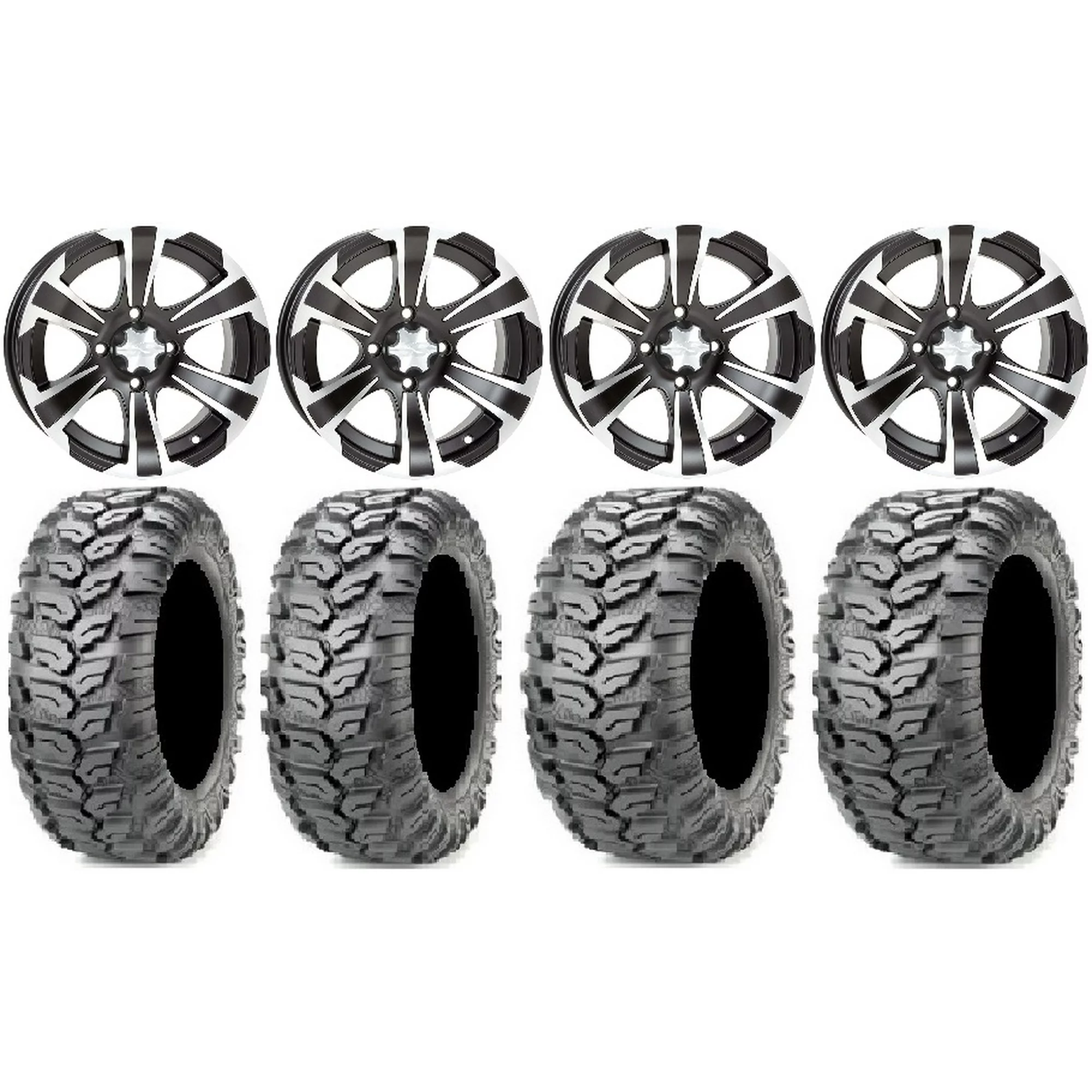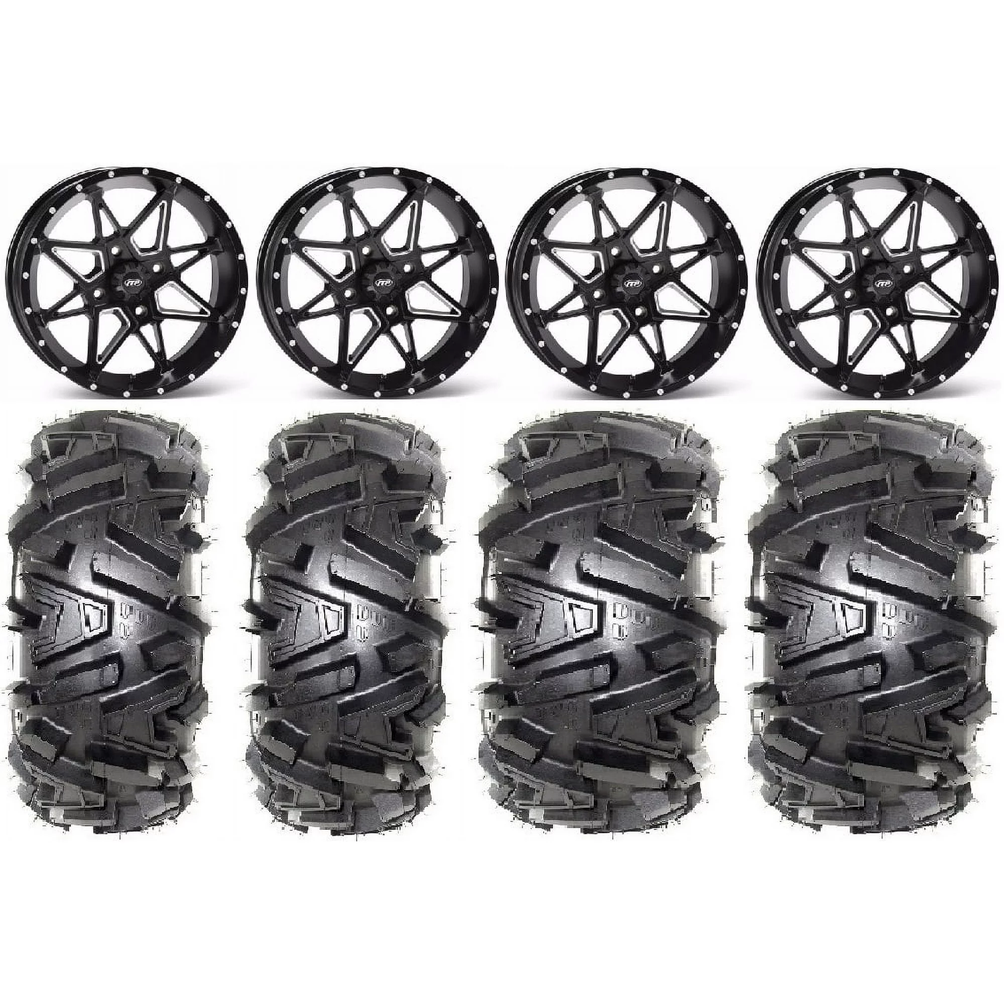 ITP Tornado 14" Wheels Blk 30" Rock-A-Billy Tires Yamaha Viking Wolverine YXZ1000R CFMoto ZForce 950 UForce 1000