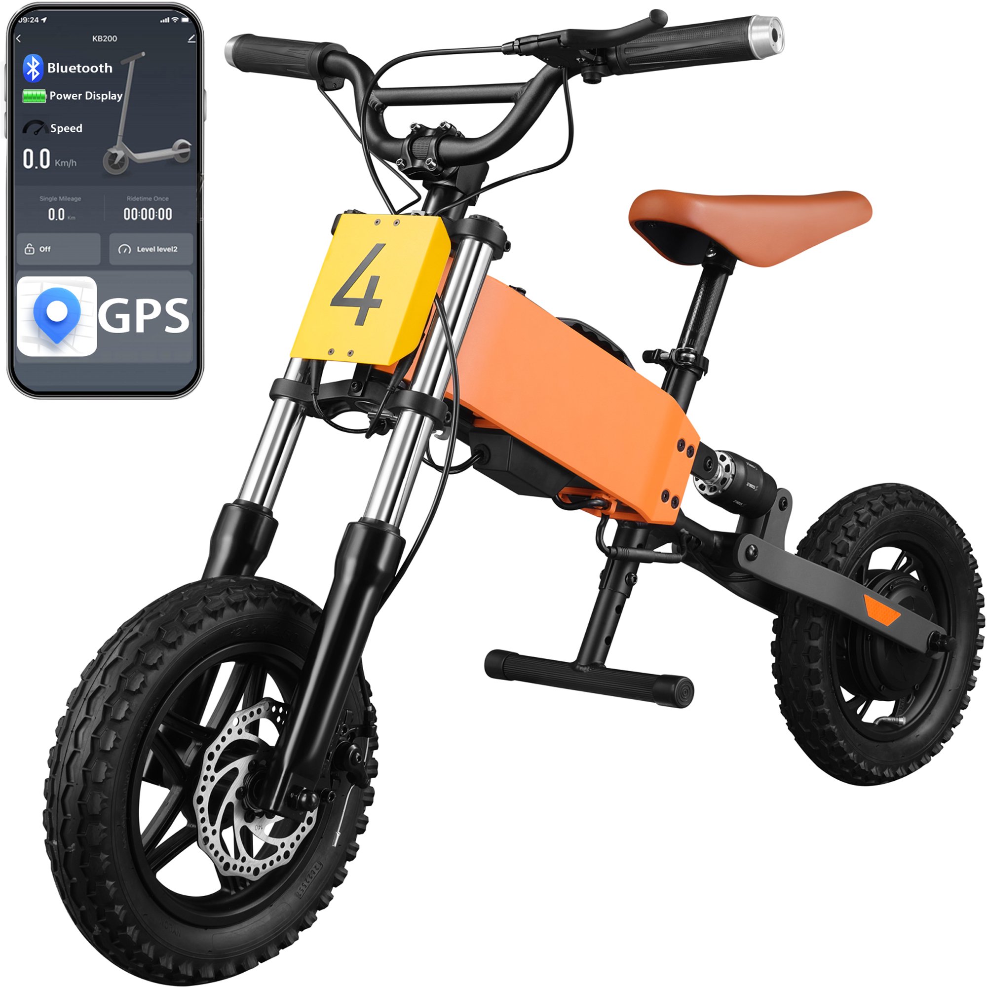 iYofe Electric Balance Bicycles for Kids 6-10, 24v Dirt Bike with Mobile App, Gps, Dirt Bicycles with Removable Battery, 12 Inch Tire & Adjustable Seat, Ride on Motorcycle for Boys and Girls, Orange