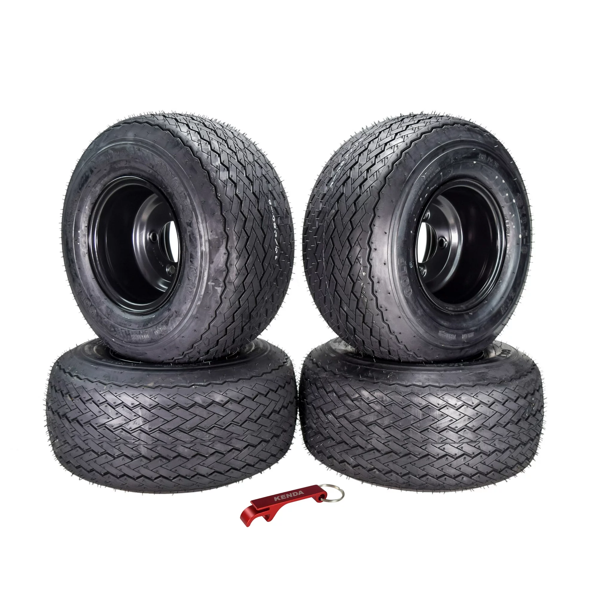 Kenda 18x8.5-8 Golf Cart Tires (4 Ply) & Semi-Gloss Black Wheels Assembled Kit Full Set (4 Pack) with Keychain
