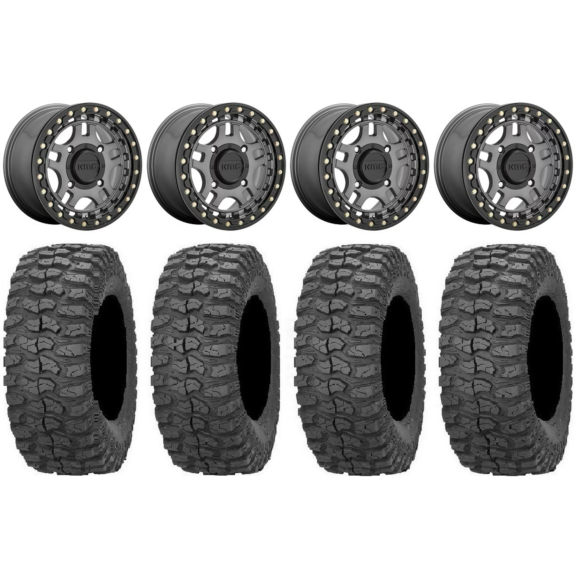 KMC Recon Beadlock 15" Wheels Gun Metal 32" Rock-A-Billy Tires Polaris RZR XP 1000 / PRO XP / Ranger XP 900/1000