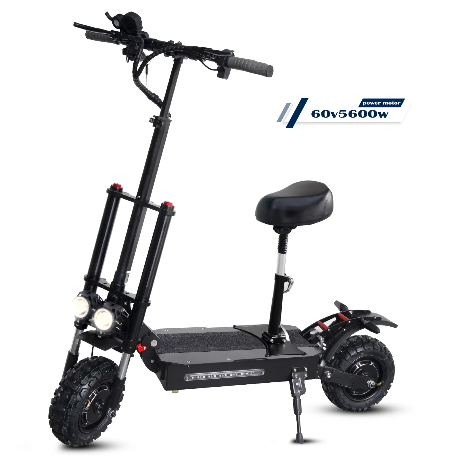 LISUEYNE Electric Scooter with Seat, Max Speed 50MPH, 50 Mile Long Range, 60V 5600W Dual Drive, 11" Tires off Road Adult Electric Scooter, LCD Display, Folding Kick Scooter