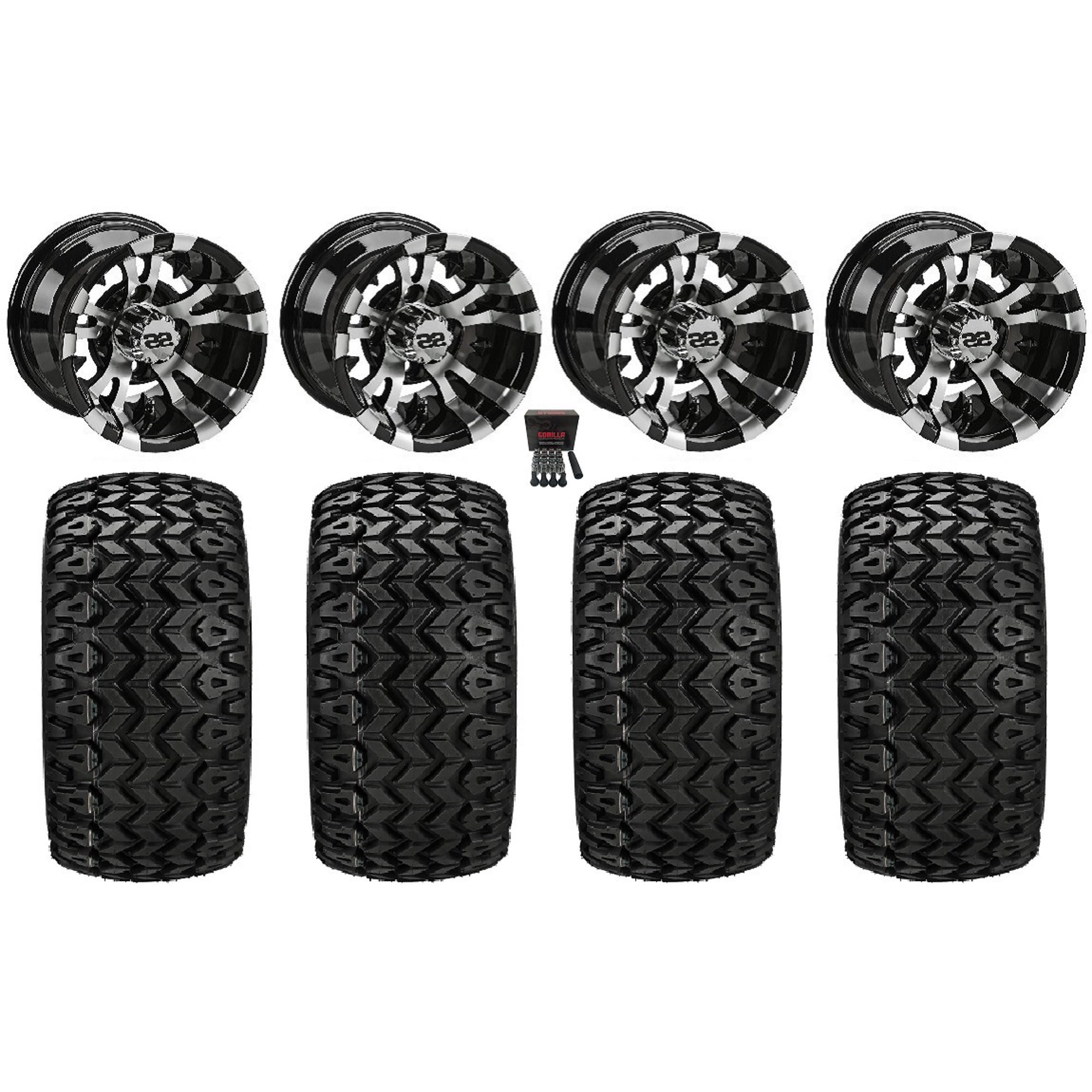 LSI Warlock 10" Golf Wheels Black 22" Sierra Sport Tires E-Z-GO & Club Car