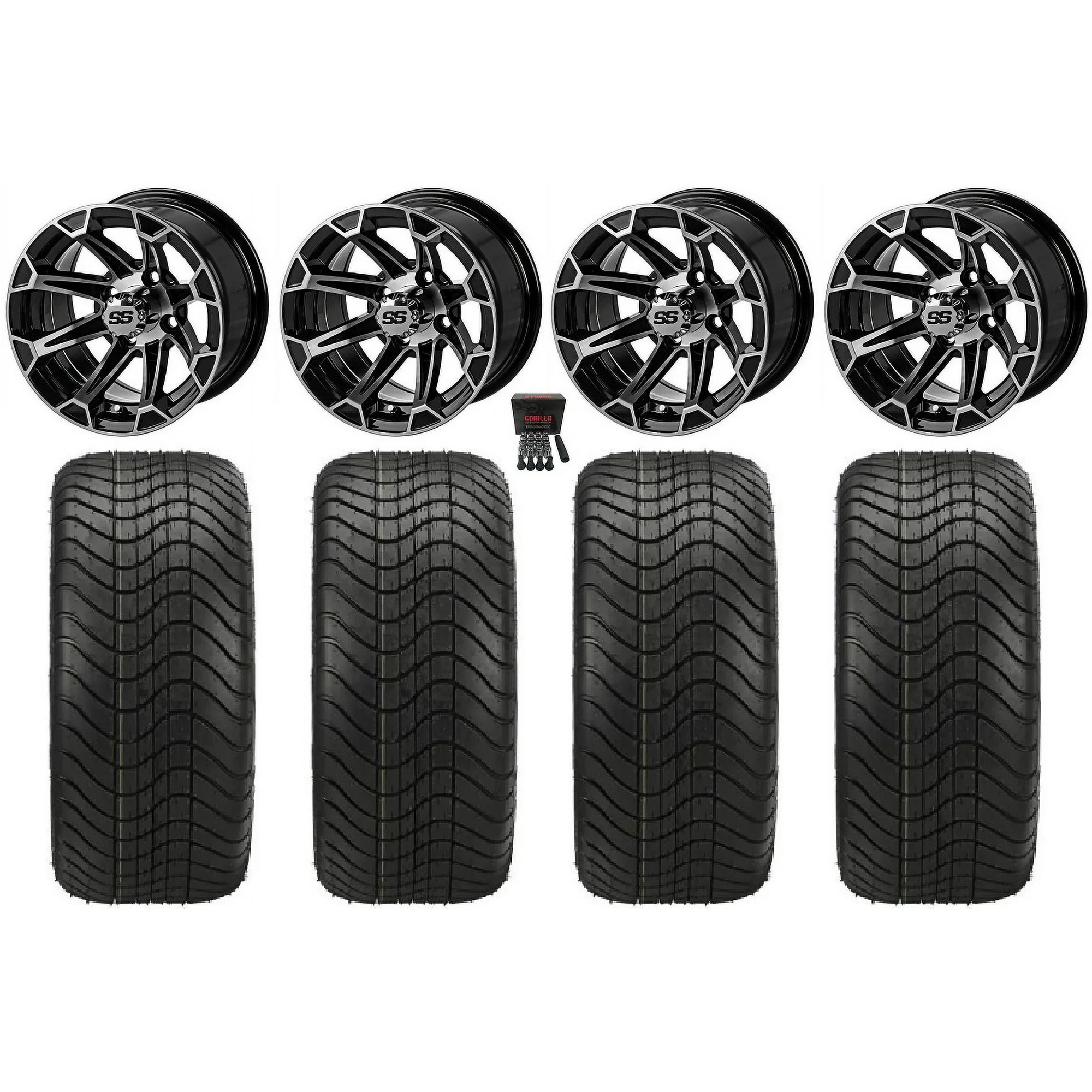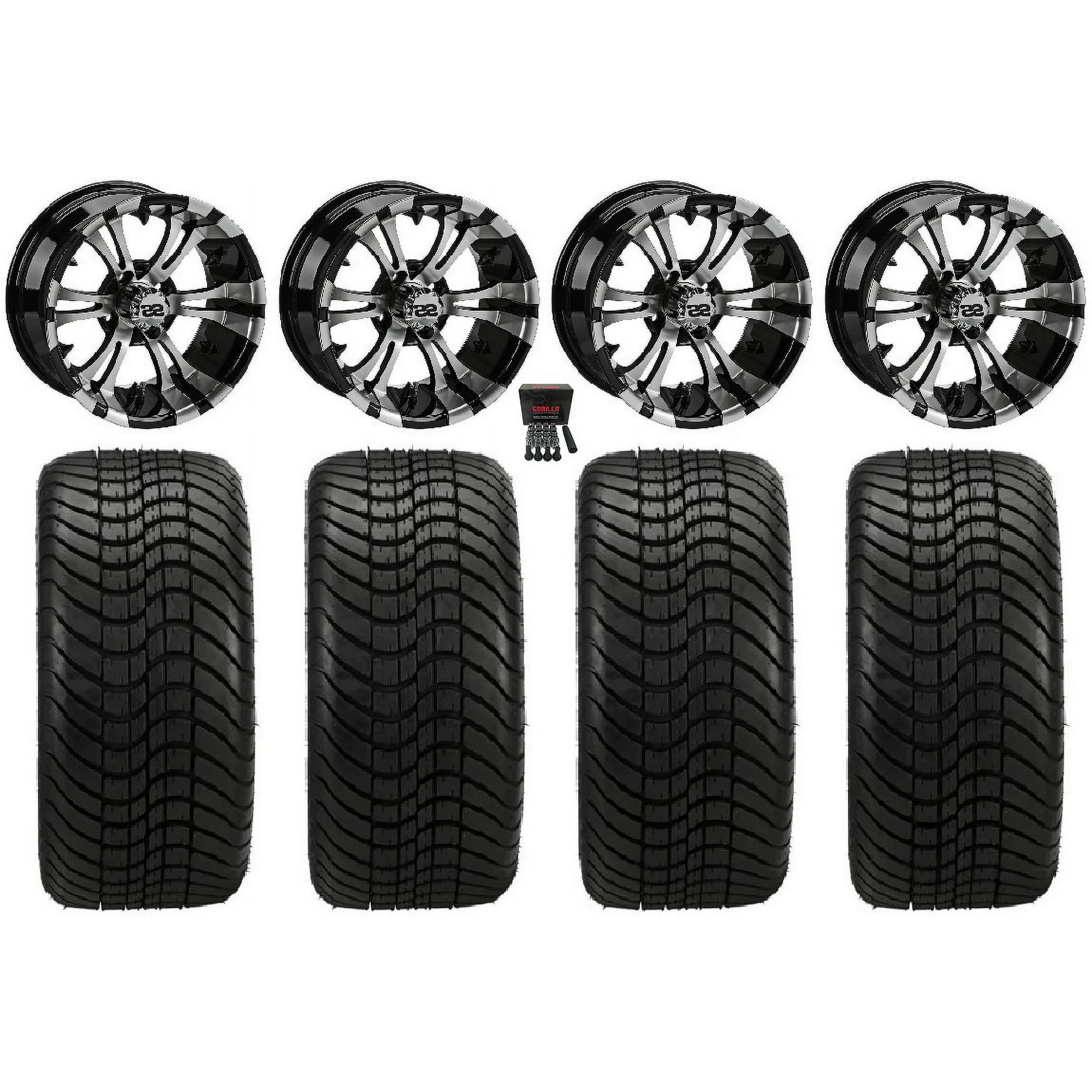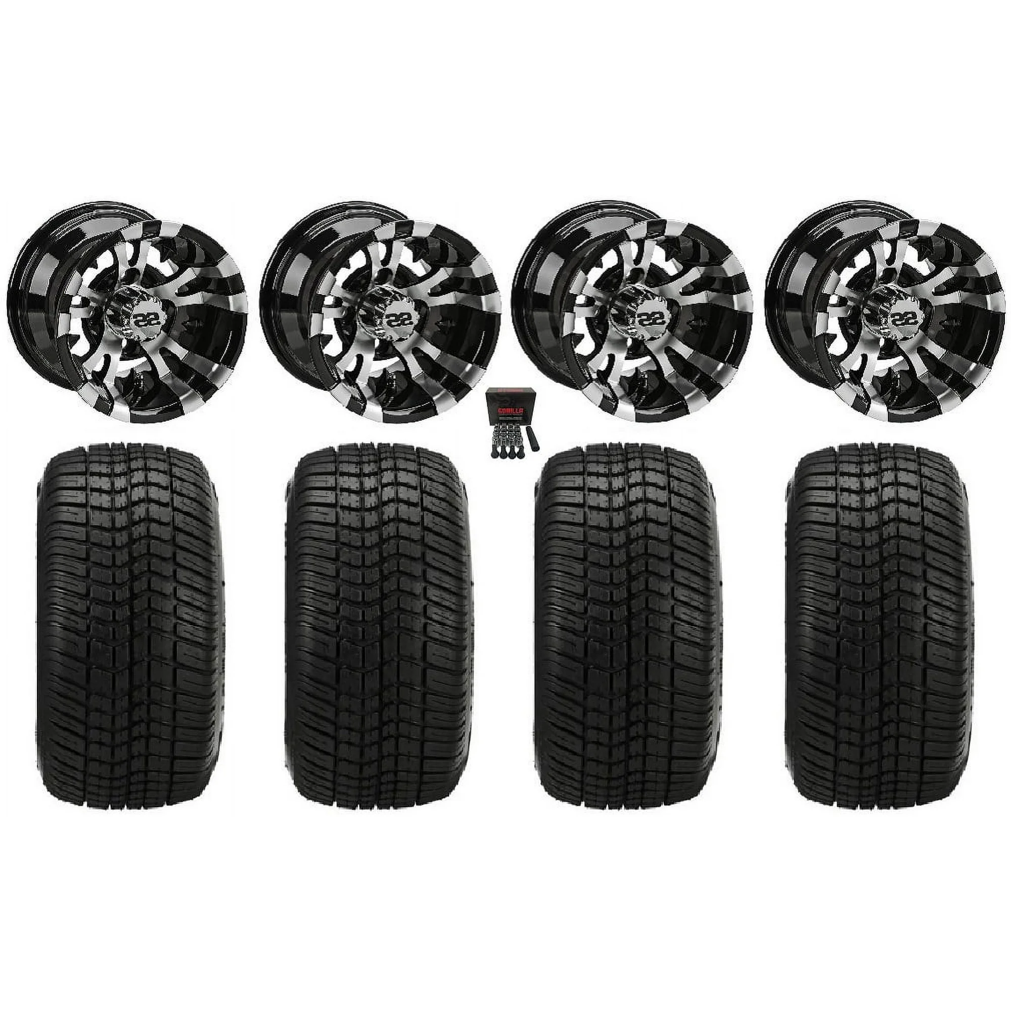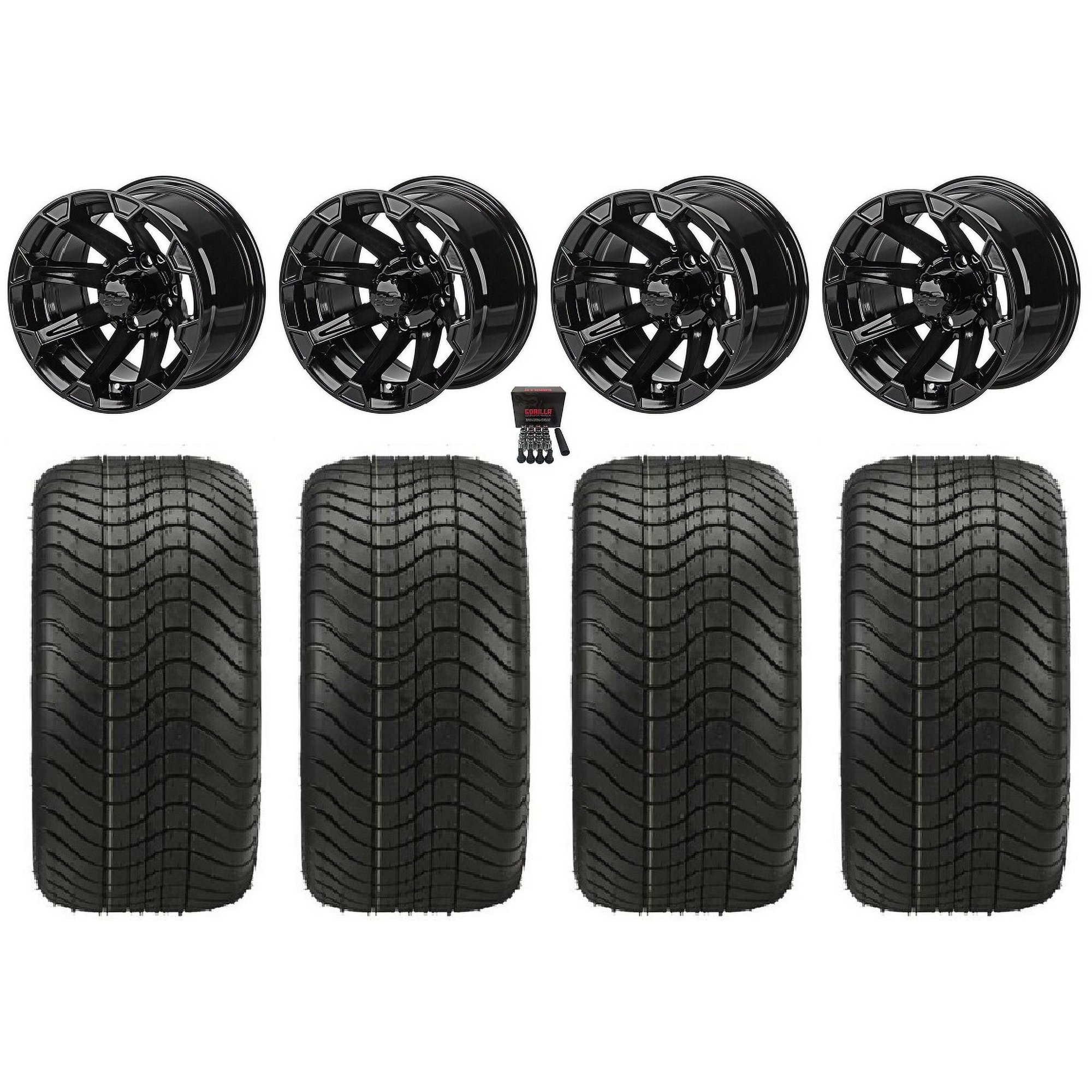 LSI Viking 12" Golf Wheels Gloss Black Elite 215x40-12 Tires E-Z-GO & Club Car