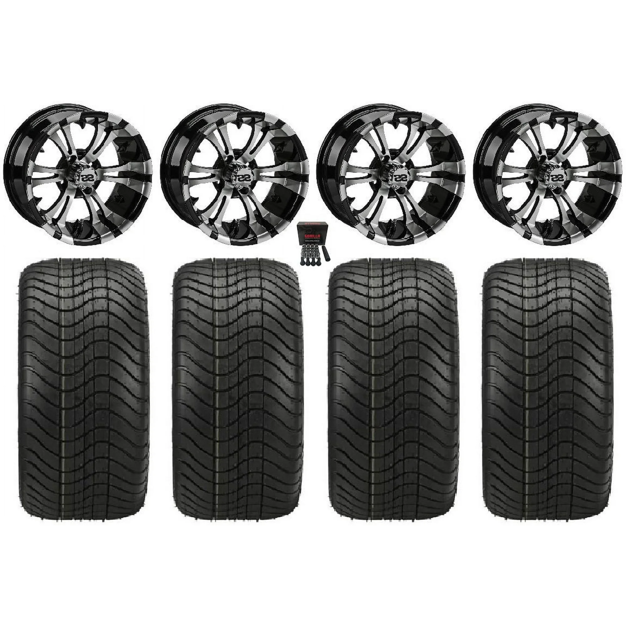 LSI Viking 12" Golf Wheels Gloss Black Elite 215x35-12 Tires E-Z-GO & Club Car
