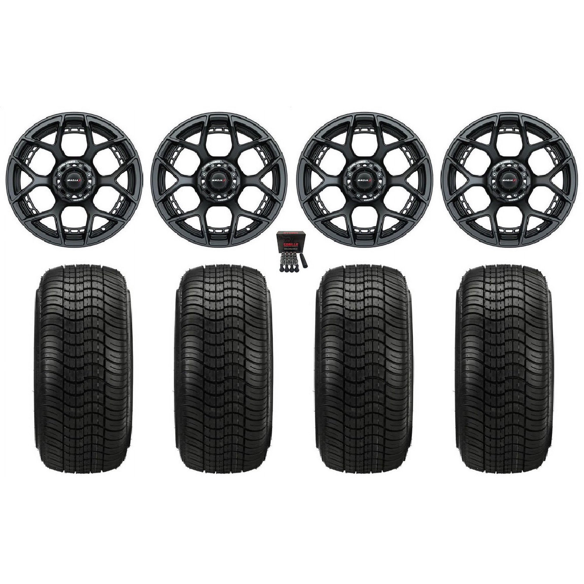 Madjax Evolution 15" Golf Wheels Black 205x35 Elite Tires E-Z-GO & Club Car