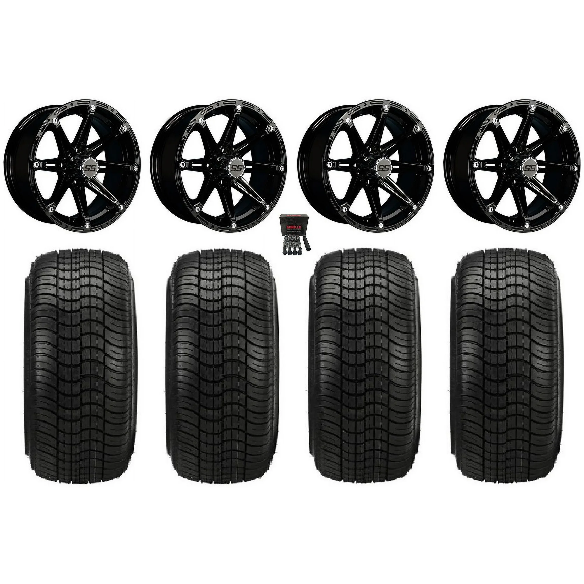 GTW Element 14" Golf Cart Wheels Black Elite 205x30-14 Tires E-Z-GO & Club Car