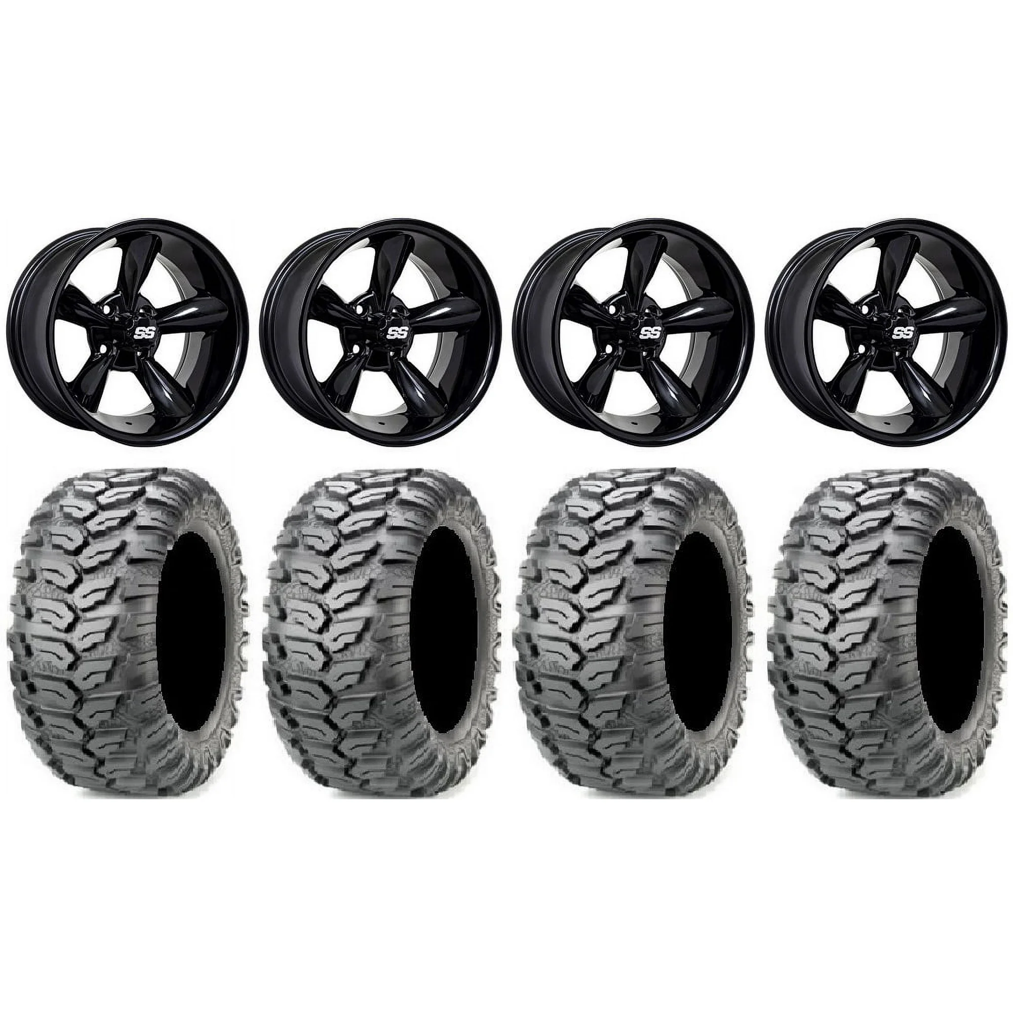 GTW Godfather 12" Golf Cart Wheels Black 23" Ceros Tires Yamaha