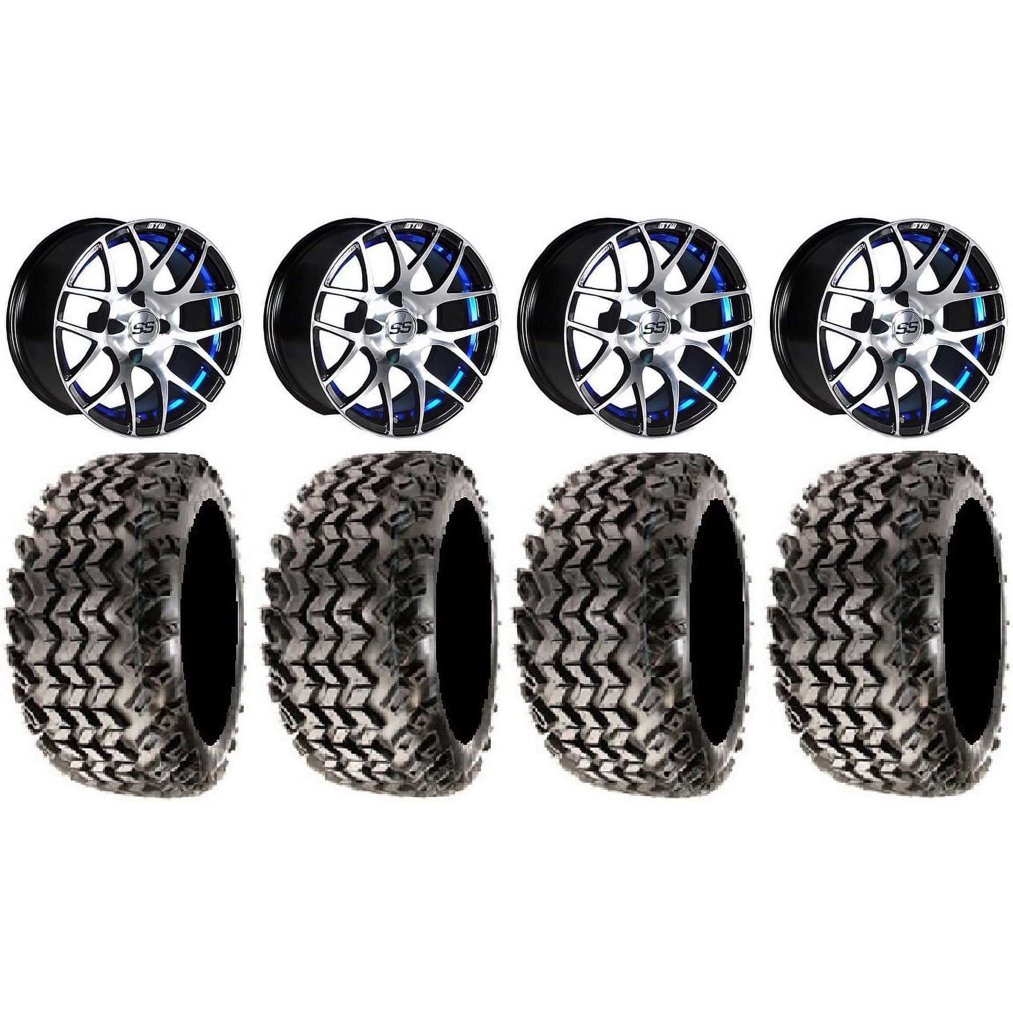 GTW Pursuit 12" Golf Cart Wheels Blue 23" Hammer Tires Yamaha