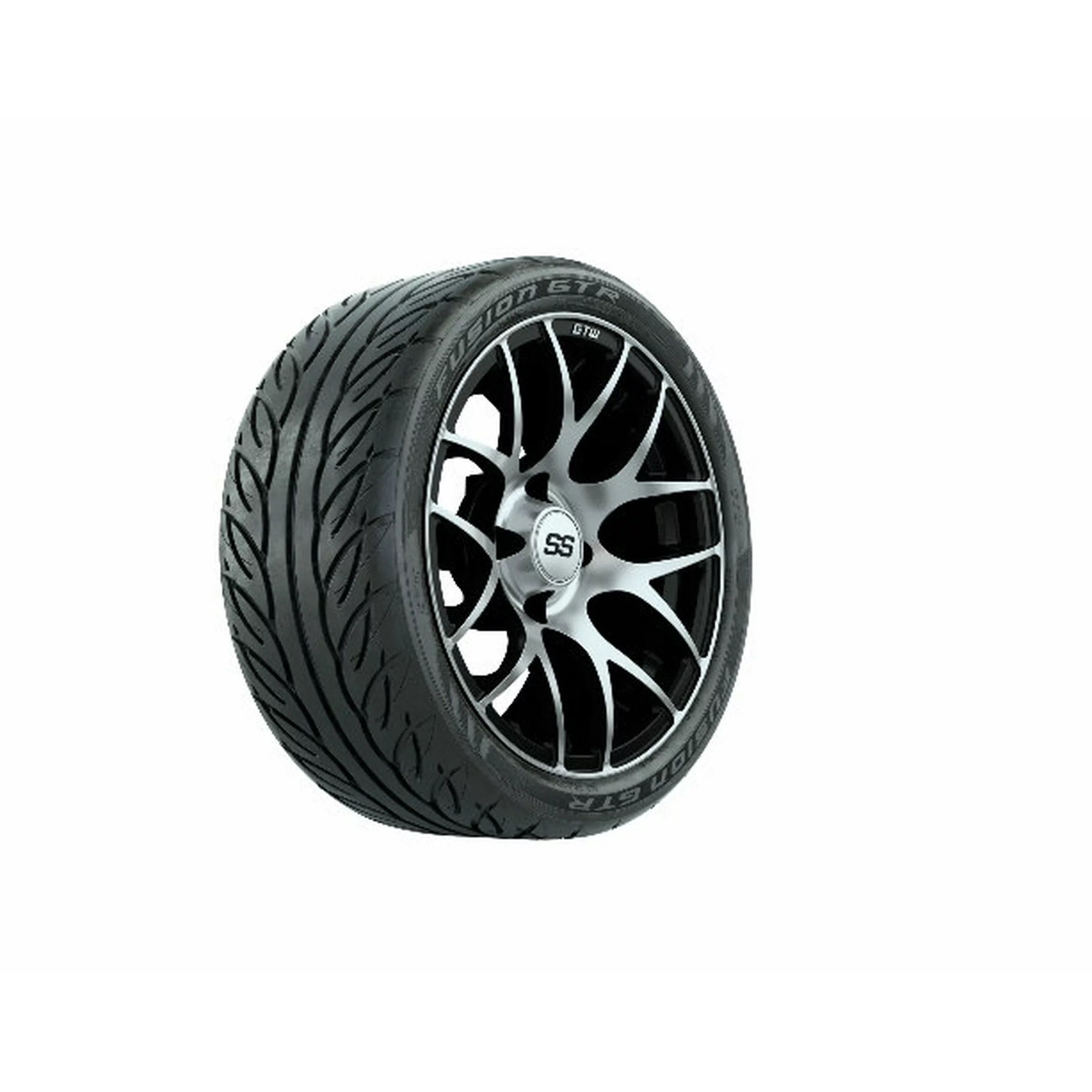 GTW Pursuit 14" Black Golf Cart Wheel 225/40-R14 (21") Fusion GTR Steel Belted Radial Cart Tire |Set