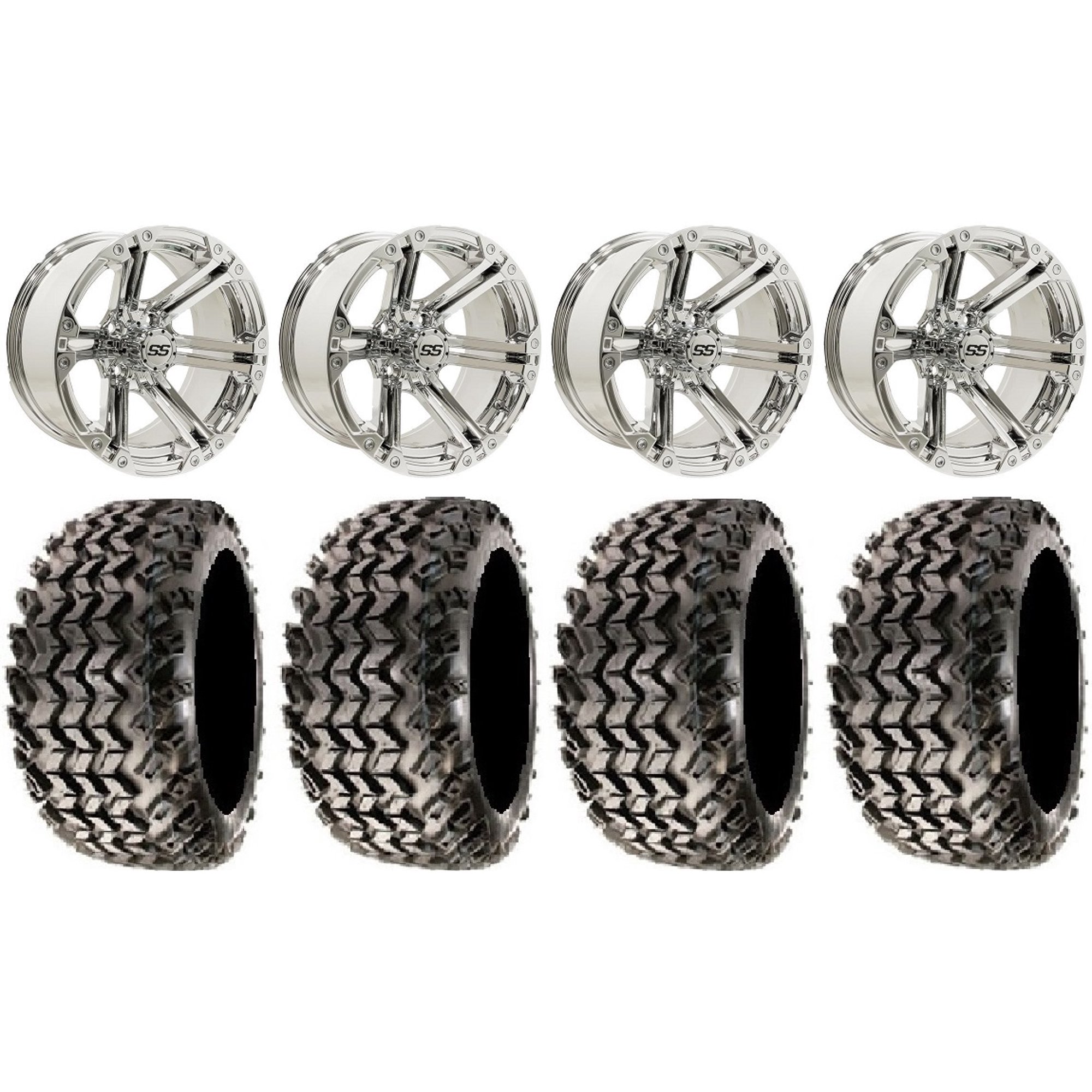 GTW Specter 14" Golf Cart Wheels Chrome 23" Classic A/T Tires E-Z-GO & Club Car