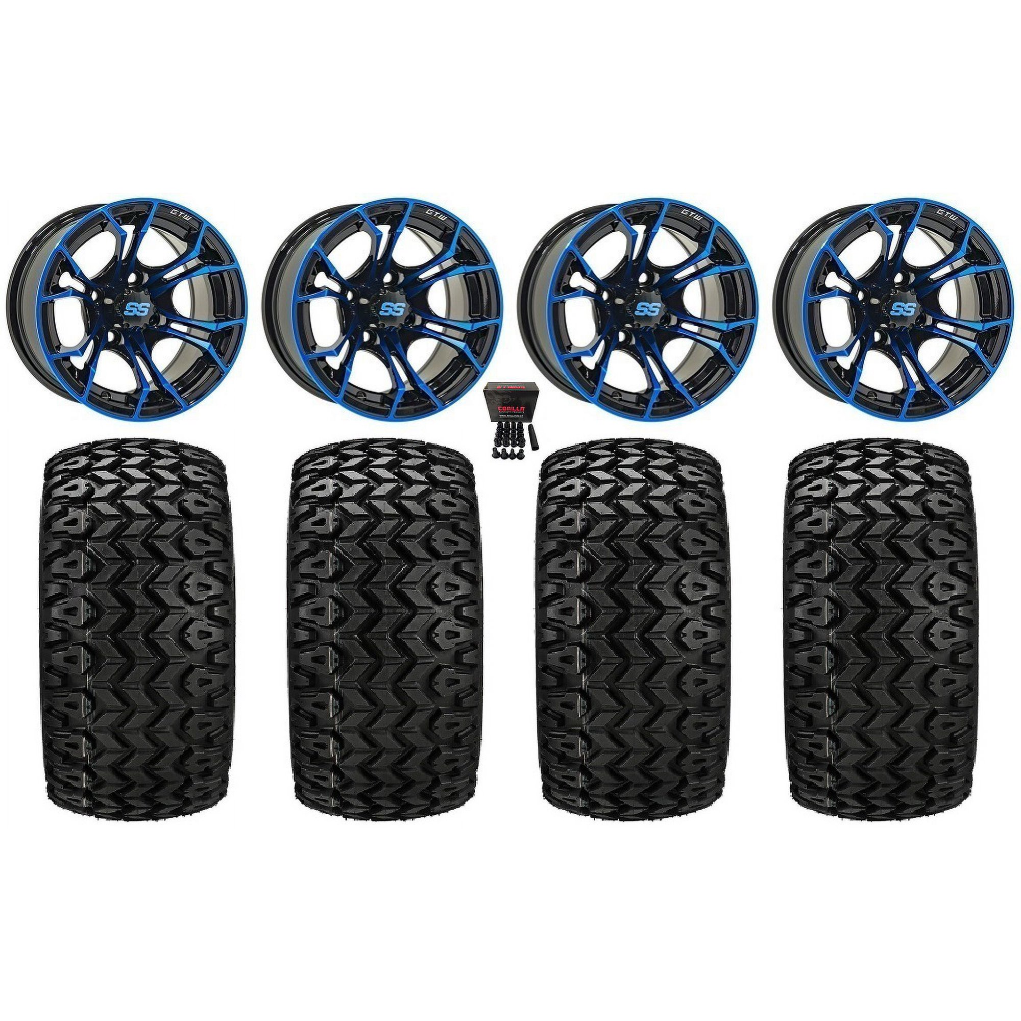 GTW Spyder 12" Golf Cart Wheels Blue 23" Sierra Tires Yamaha