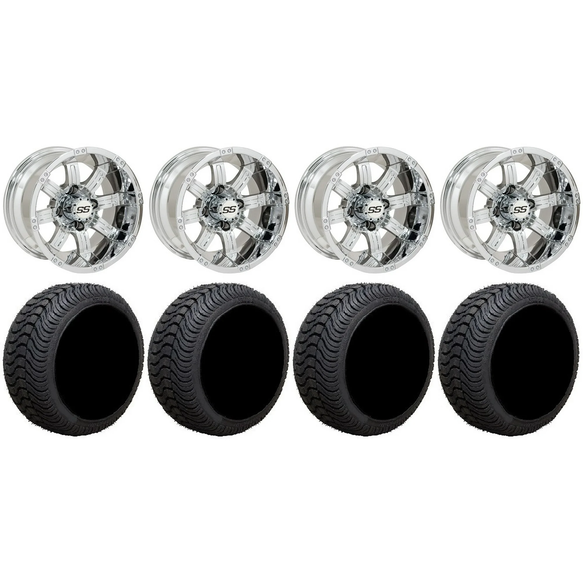 GTW Tempest 14" Golf Cart Wheels Chrome 205x30 Cruze Tires Yamaha