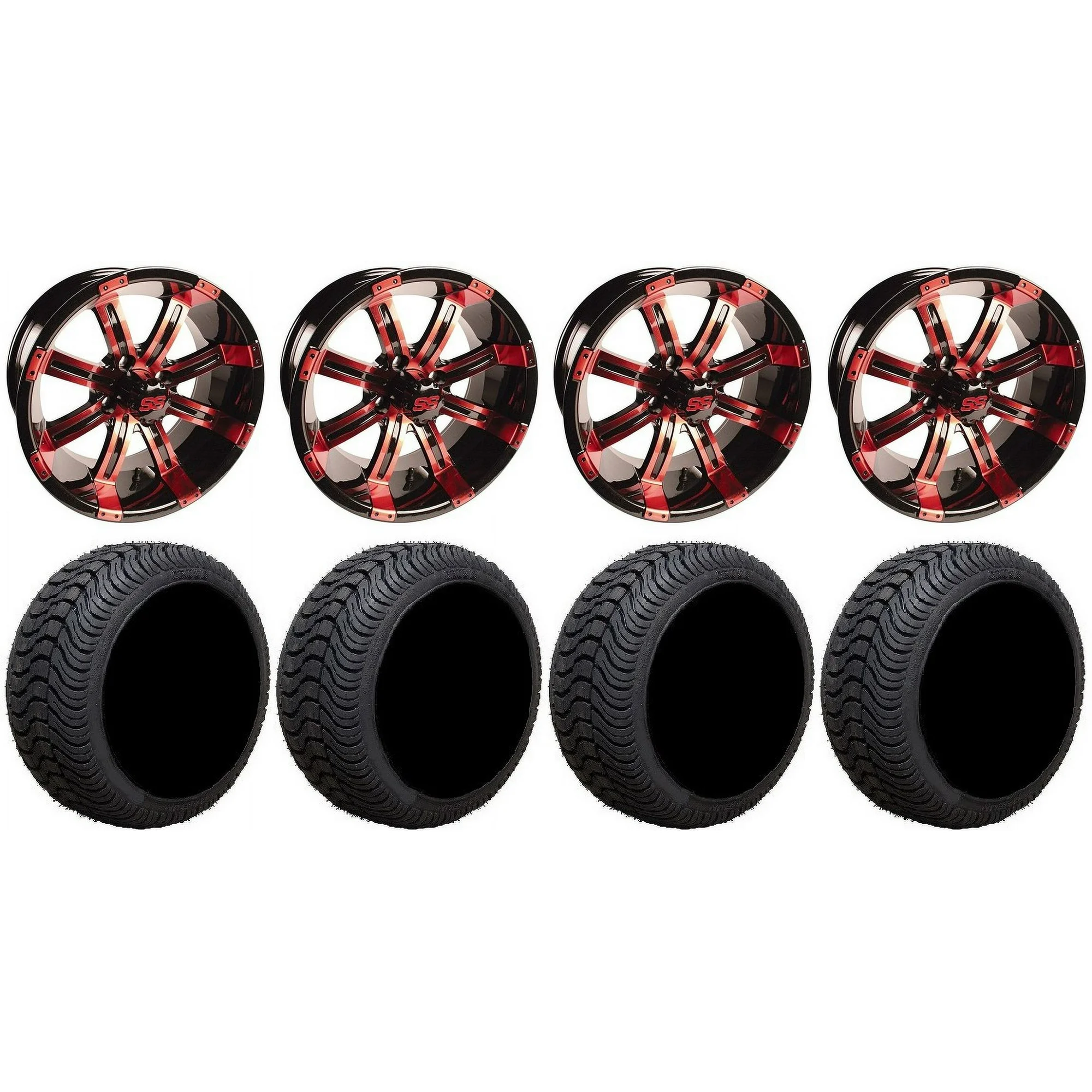 GTW Tempest 12" Golf Cart Wheels Red 215x35 Cruze Tires E-Z-GO & Club Car