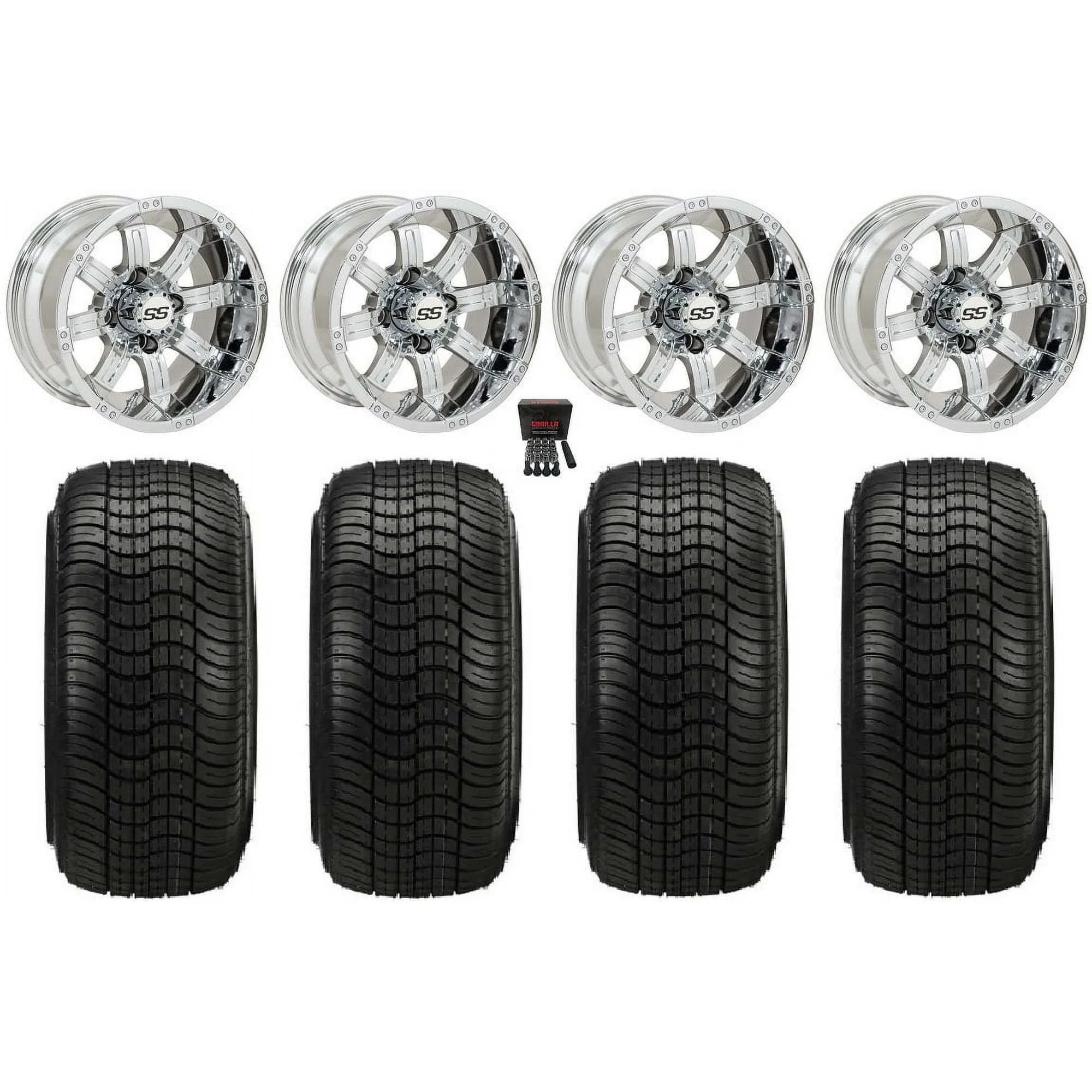GTW Tempest 14" Golf Cart Wheels Chrome Elite 205x30-14 Tires E-Z-GO & Club Car