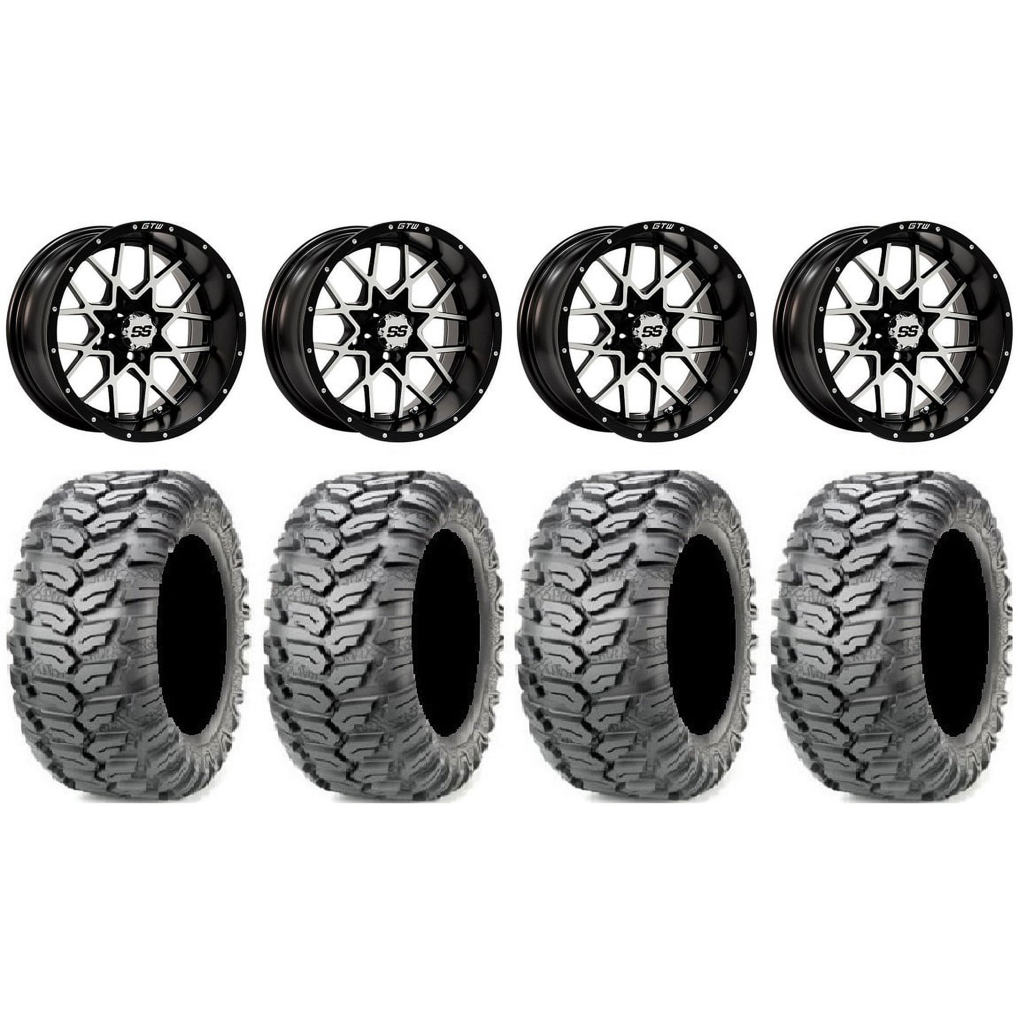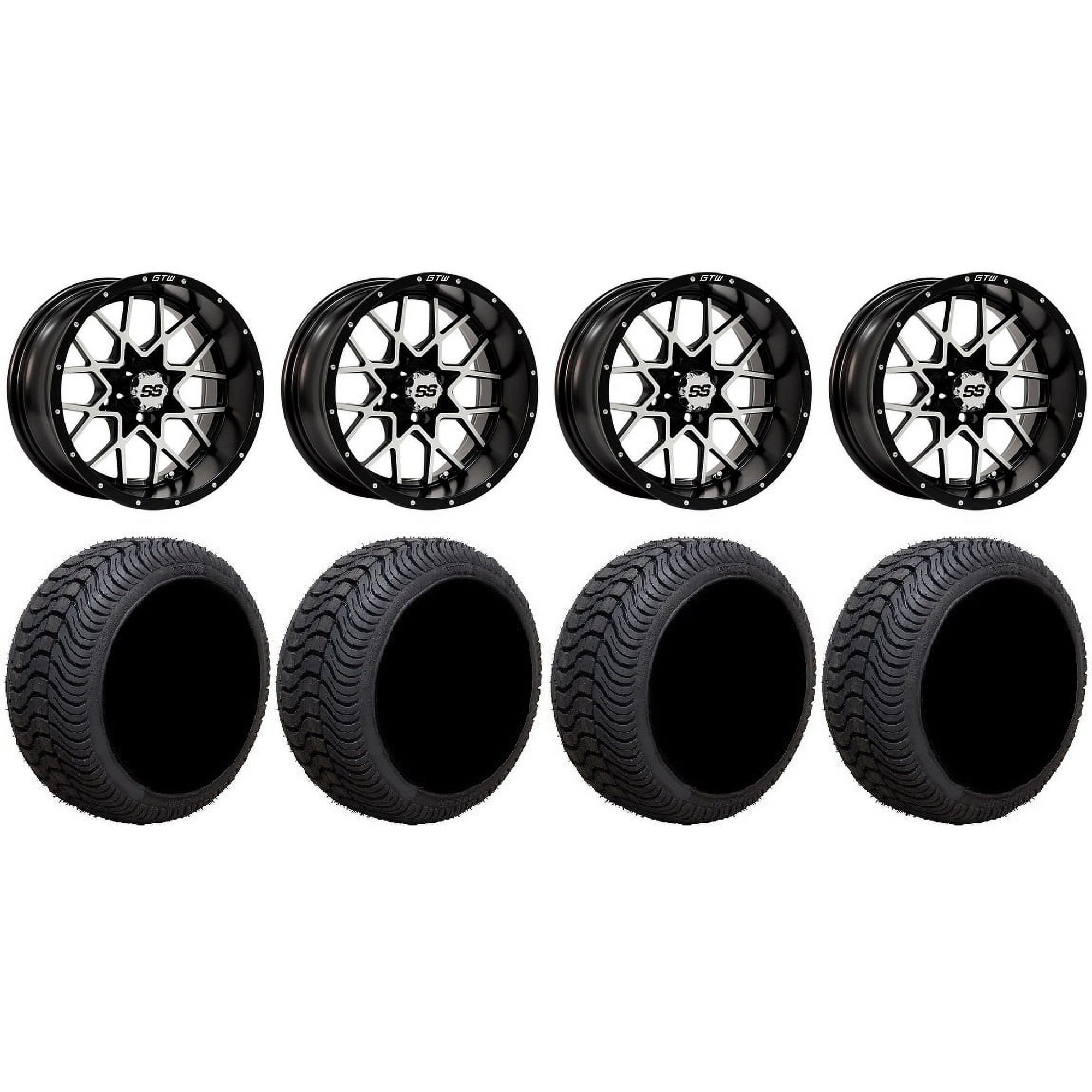 GTW Vortex 2 12" Golf Cart Wheels Machined 215x35 Cruze Tires Yamaha
