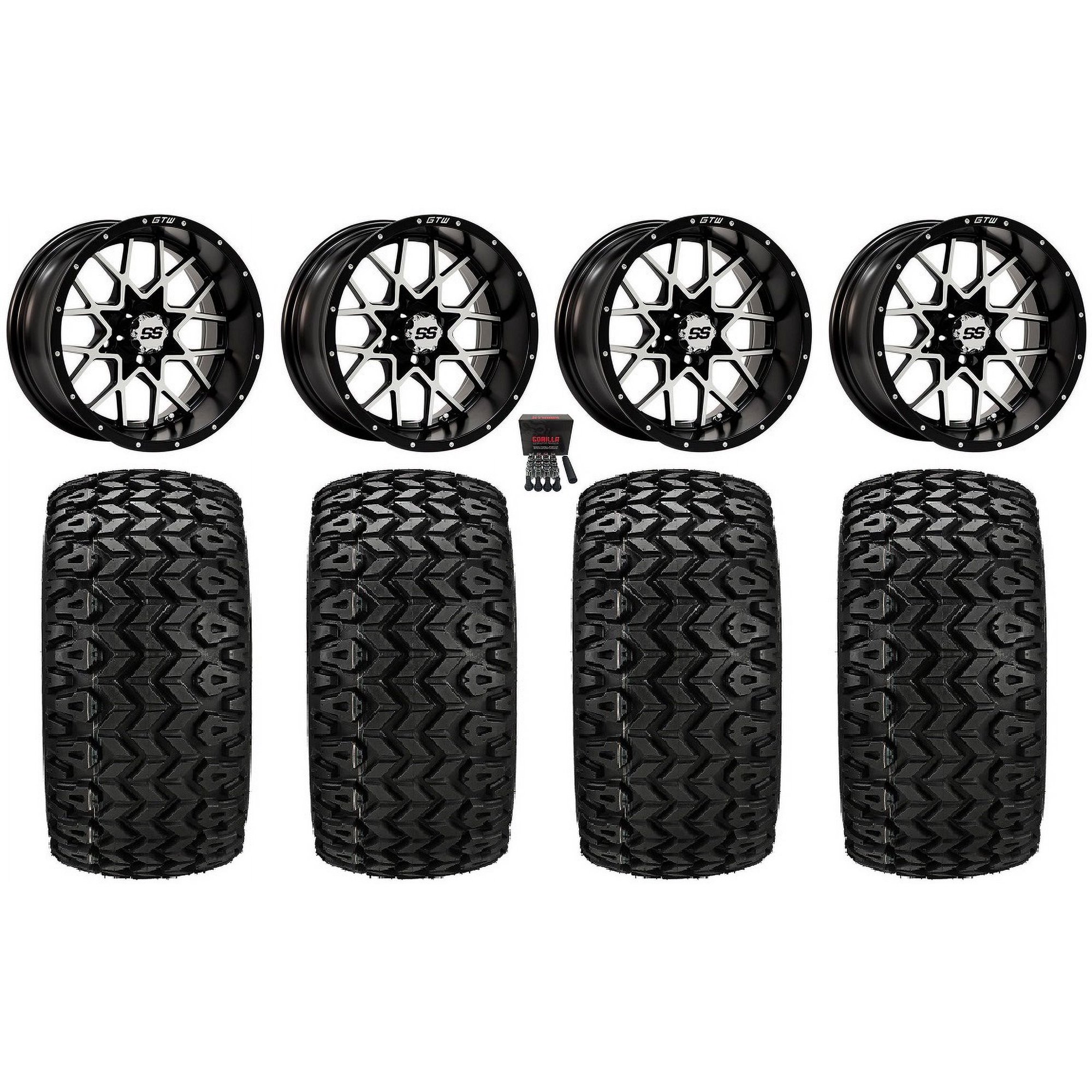 GTW Vortex 2 12" Golf Cart Wheels Machined 20" Sierra Sport Tires Yamaha