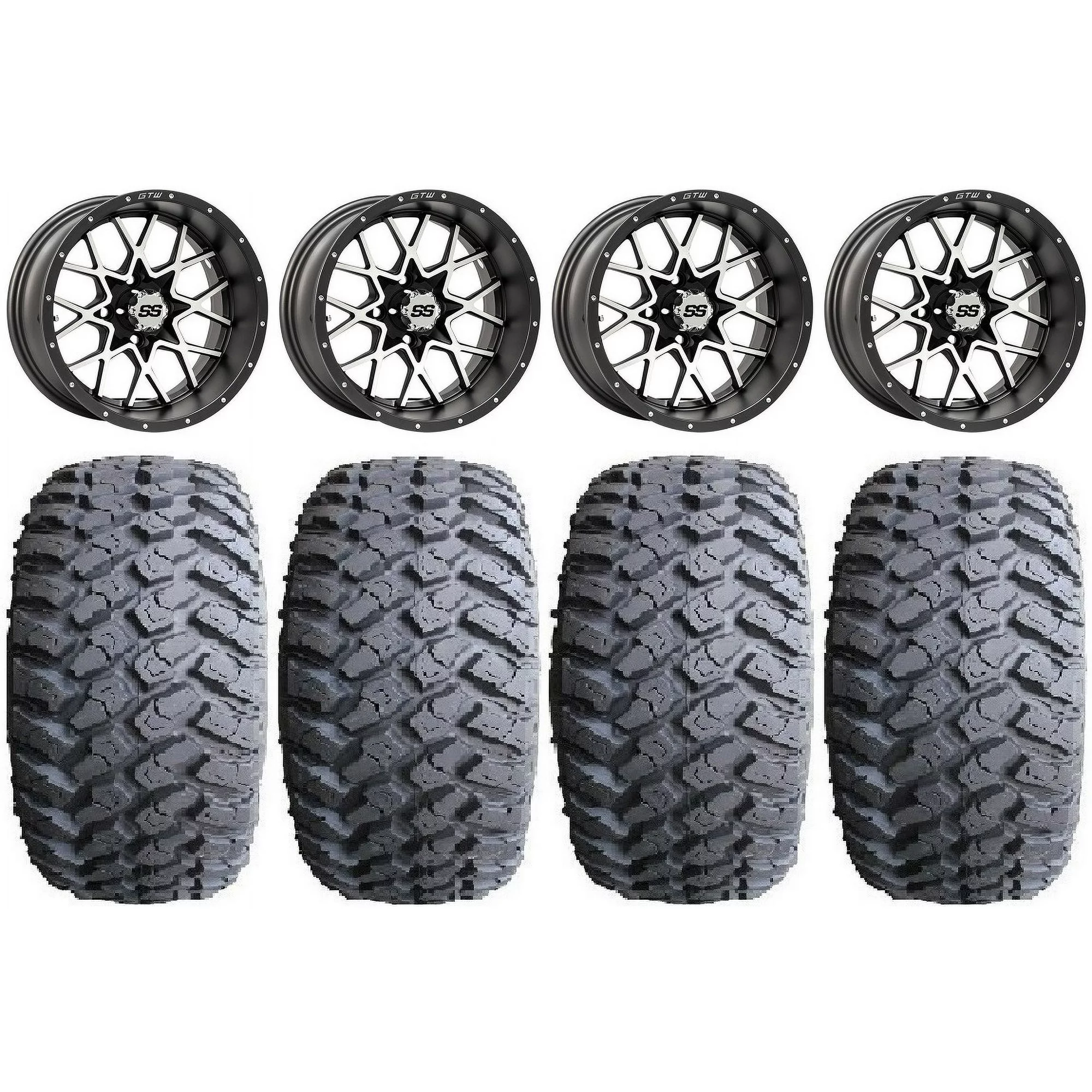 GTW Vortex 2 14" Golf Cart Wheels Machined 23" Hammer Tires Yamaha