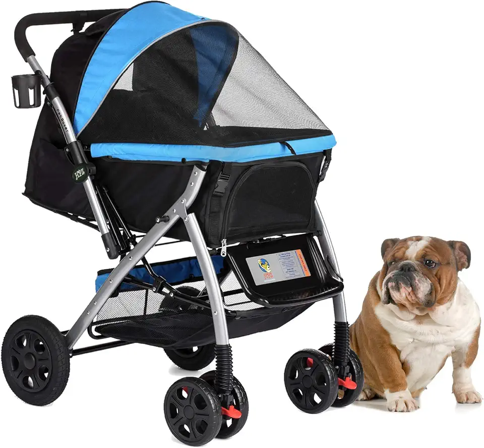 HPZ PET Rover Premium Heavy Duty Dog/Cat/Pet Stroller Travel Carriage with Convertible Compartment/Zipperless Entry/Reversible Handlebar/Pump-Free Rubber Tires for Small, Medium and Large Pets (Blue)