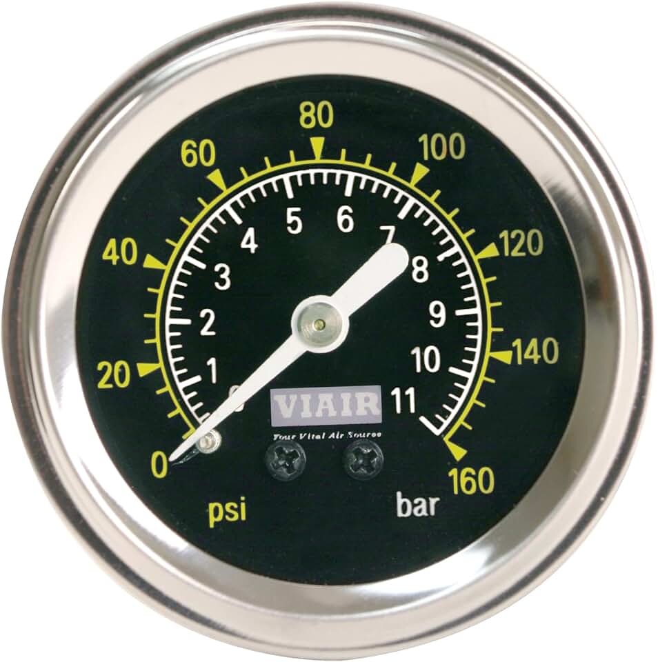 Bundle of VIAIR 400P - 40045, Automatic Function Portable Compressor Kit, Tire Pump, Truck/SUV Tire Inflator, Silver, For up to 35 Inch Tires + VIAIR 00032 Air Down Gauge, Black