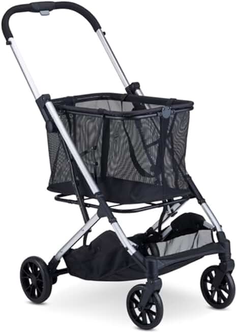 Joovy Boot Shopping Cart Featuring 70 lbs Total Weight Capacity, Stylish Removable Tote, Swivel Tires for Easy Steering, One-Handed Compact Fold, and One-Step Parking Brake (Silver Frame)