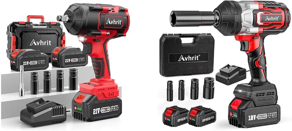 1000N.m High Torque Brushless Impact Gun, 2 x 4.0Ah Battery & Fast Charger & 4 Sockets, Impact Driver for Car Tires Truck Mower,1300N.m(960ft-lbs) Cordless Impact Wrench 1/2 Inch,2 x 5.0Ah Batt
