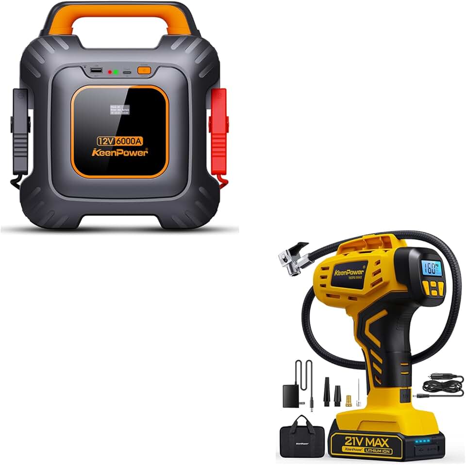 6000A Super Capacitor Jump Starer & KeenPower Cordless Tire Inflator Portable Air Compressor