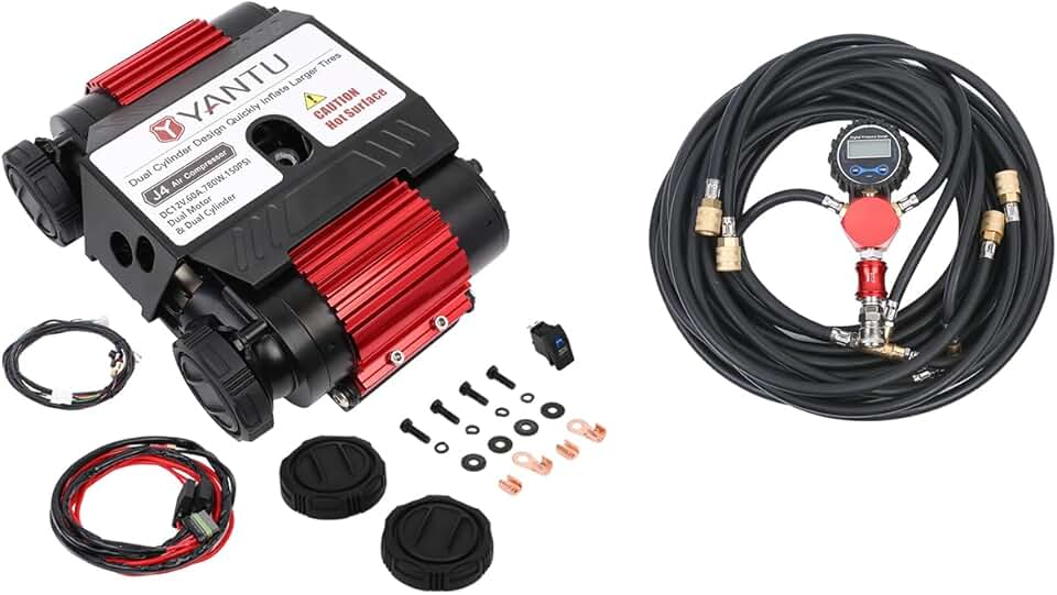 YANTU Dual Cylinder 12V onboard/offroad air compressor portable and 250PSI Digital Tire Pressure Gauge & Inflator