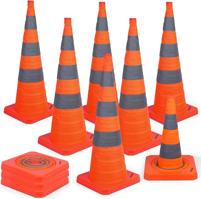 BATTIFE [10 Pack] 36 Inch Collapsible Traffic Safety Cones, Orange Cones, Multi Purpose Pop-up Cones with Reflective Collar, for Road Parking, Driving Practice