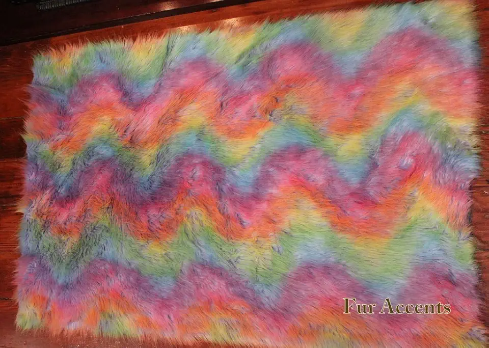 Faux Rug, Rainbow Oval Shag, Sheepskin Area Rug 50''X60