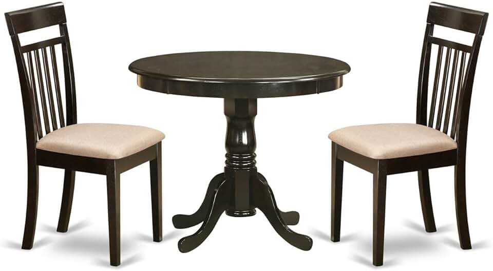 East West Furniture ANCA3-CAP-C Kitchen Dining Table Set- 2 Awesome Wooden Chairs - A Gorgeous Dining Table- Linen Fabric Seat and Cappuccino Finish Kitchen Table