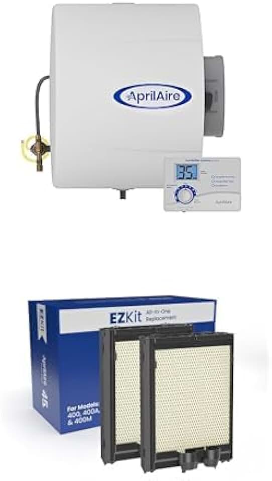 Bundle of AprilAire 400 Whole-House Humidifier, Large Capacity Whole-House Humidifier for Homes up to 5,000 Sq. Ft. + AprilAire H445EZ1A Humidifier Filter/Water Panel Assembly Replacement Kit (2-pack)