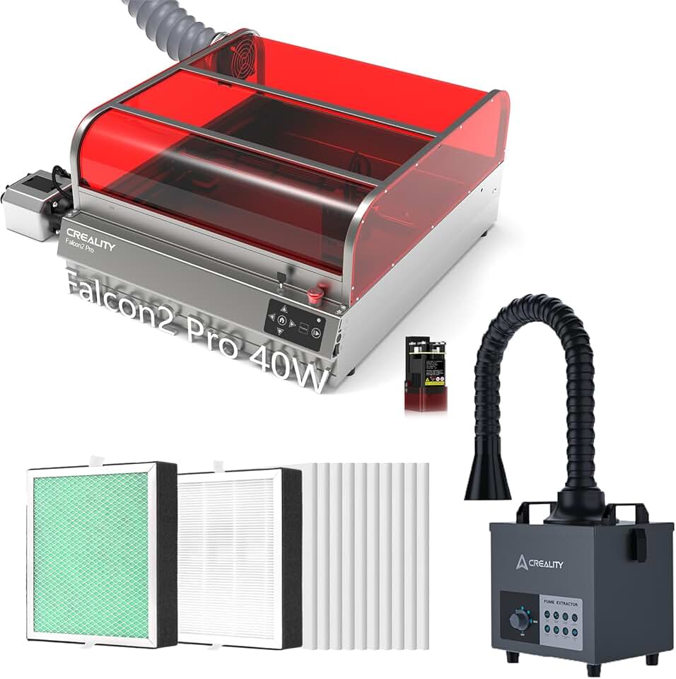 Creality Engraver Enclosed, Falcon2 Pro 40W Output Engraver with Smoke Purifier with Extraction Tube, Filter Replacement for Creality Fume Extractor