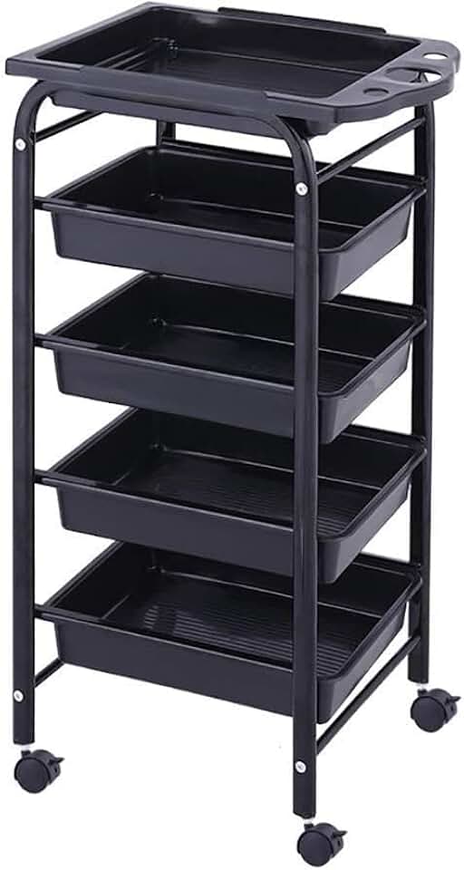 Large Movable Trolleys, Household Serving Cart 4 Trays Trolley Beauty Salon Cart with Wheels, Hairdryer Holder, Mobile Drawer