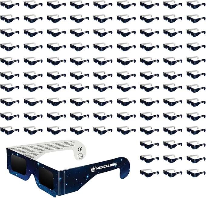 Medical king Solar Eclipse Glasses (1000 pack) 2024 CE and ISO Certified Safe Shades for Direct Sun Viewing approvd, Blue