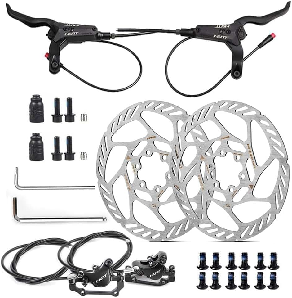 E-Bike Hydraulic Disc Brake Set: Nutt Electric Bicycle Hydraulic Disc Brake Kit with 2-PIN Power-Off Sensor,Included Left Front Right Rear Brake Levers and Calipers,Pair 160 mm Rotors and Tools