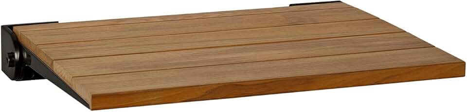 Seachrome 18 inch Silhouette Slimline Folding Wall Mount Shower Bench Seat, Natural Teak Wood with Matte Black Frame