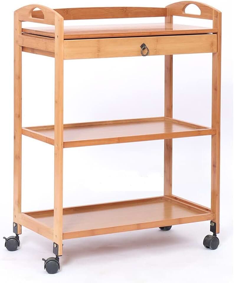 Movable WoodenDining Trolley Layer Tea Dining Cart Small Living Room Side Cabinet Beauty Salon Trolley, 59*33*80CM