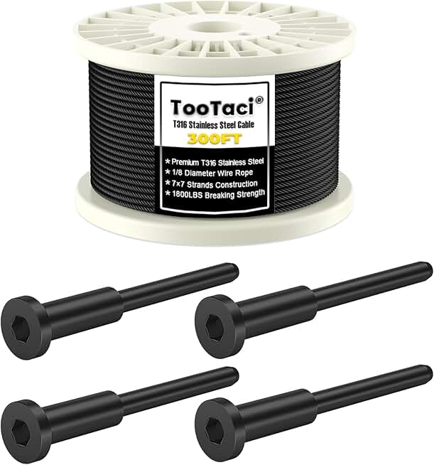 TooTaci 300ft Black Cable Wire Rope & 30pack Invisible Receiver for 1/8 Black T316 Stainless Steel Cable Railing Kit