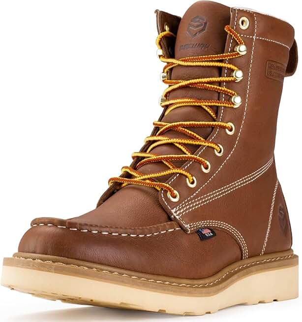 SUREWAY 8” Wedge Moc Toe Work Boots for Men - Soft Toe, Premium Full-Grain Leather, Safety Work Boots/Shoes, Comfort Insole, Superior Oil/Slip Resistant, Real Goodyear, EH Rated Industrial Construction Boots