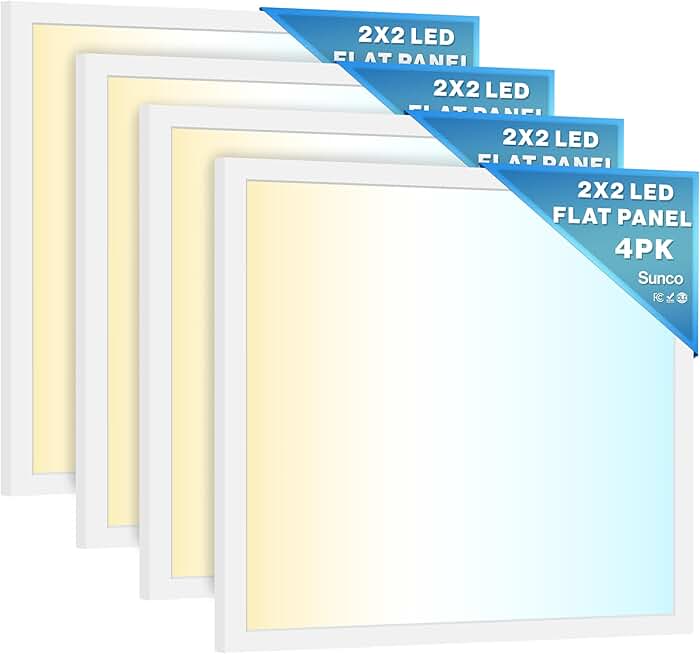 Sunco 4 Pack 2x2 LED Flat Panel Light, Selectable Color Temperature 4000K/5000K/6000K, 40W Dimmable 0-10V, 4400 LM, Dustproof Back-Lit Drop Ceiling Troffer Replacement Light Fixture ETL