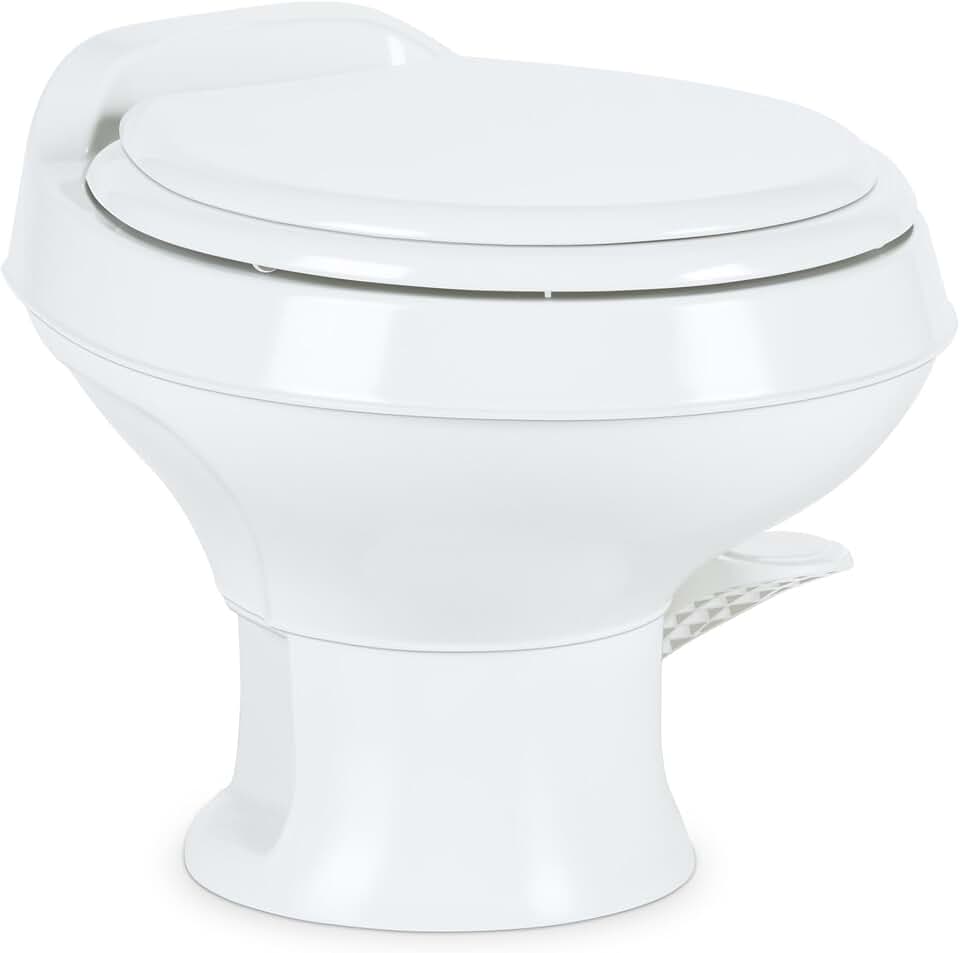 Dometic 301 Toilet Low Profile 13.5" Height- White, 301-SS/RT/WHITE, Full Size Residential Style, Clean and Watertight Triple Jet Rinse with Foot Pedal