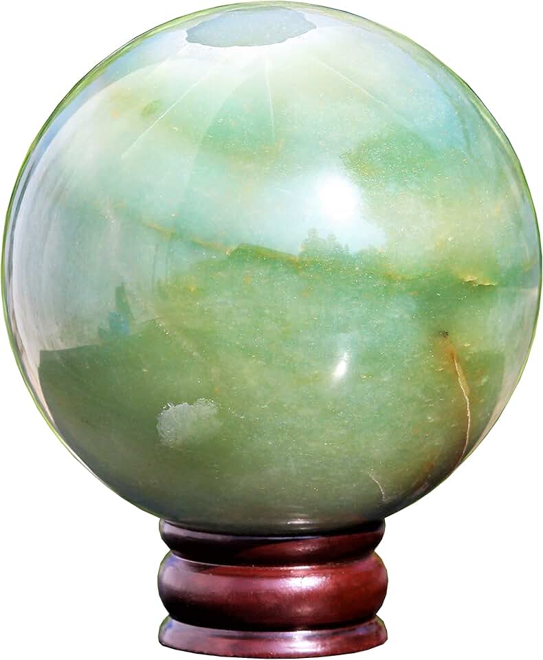 Superb Natural Polished Green Aventurine Quartz Crystal Stone Sphere (145mm) Chakras Healing Large Raw Ball with Golden Stand Minerals Specimen Orb Healing Charged Metaphysical