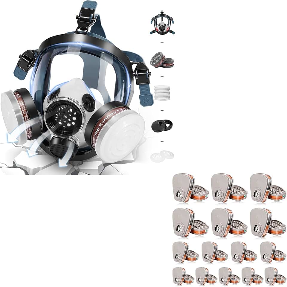 Reusable Full Face Respirator Mask, Eye&Face Protection Mask with 6001&P-A-1 Activated Carbon Filters Against Gas Formaldehyde, Organic Vapor, Chemical, Dust, Fume